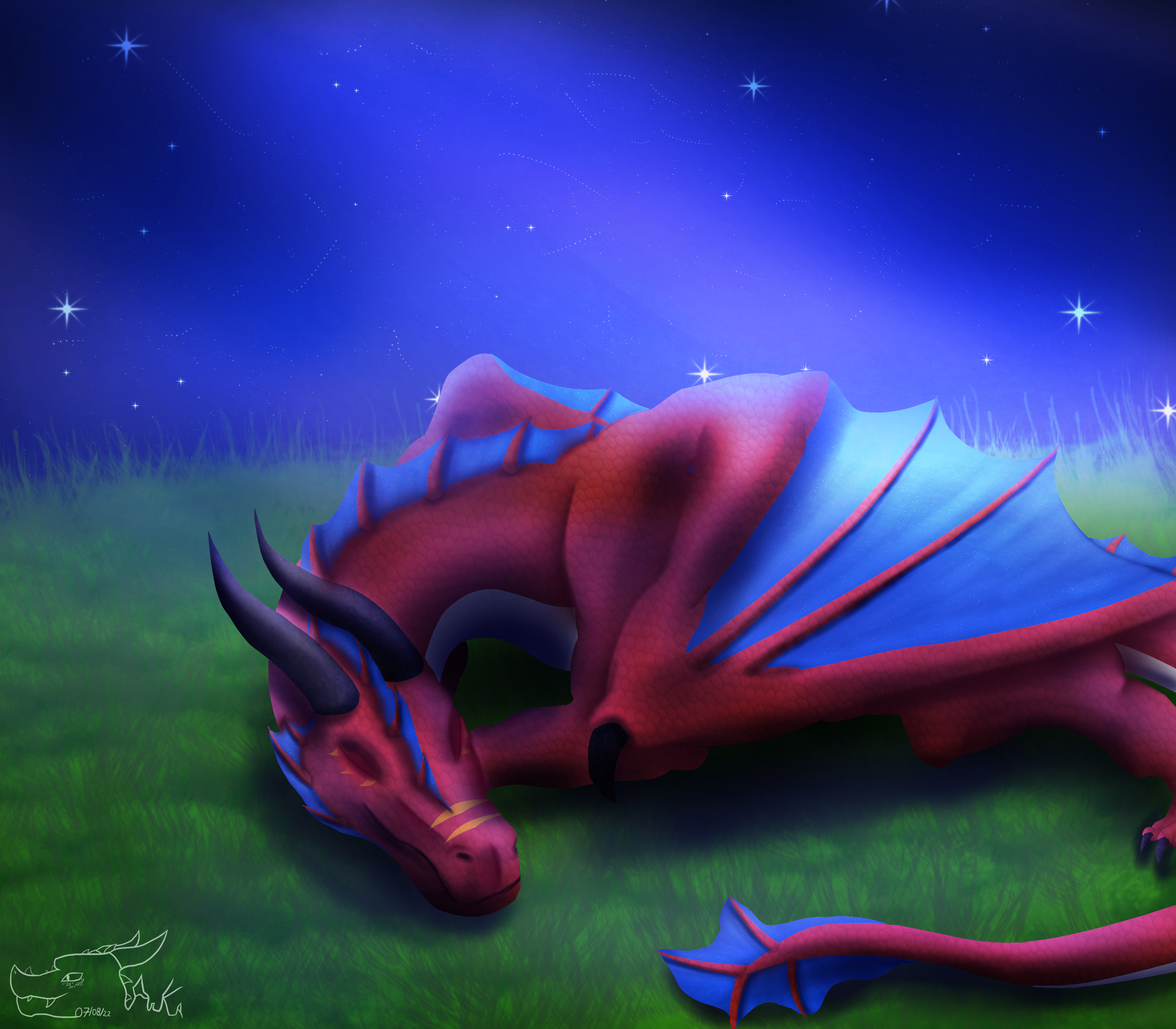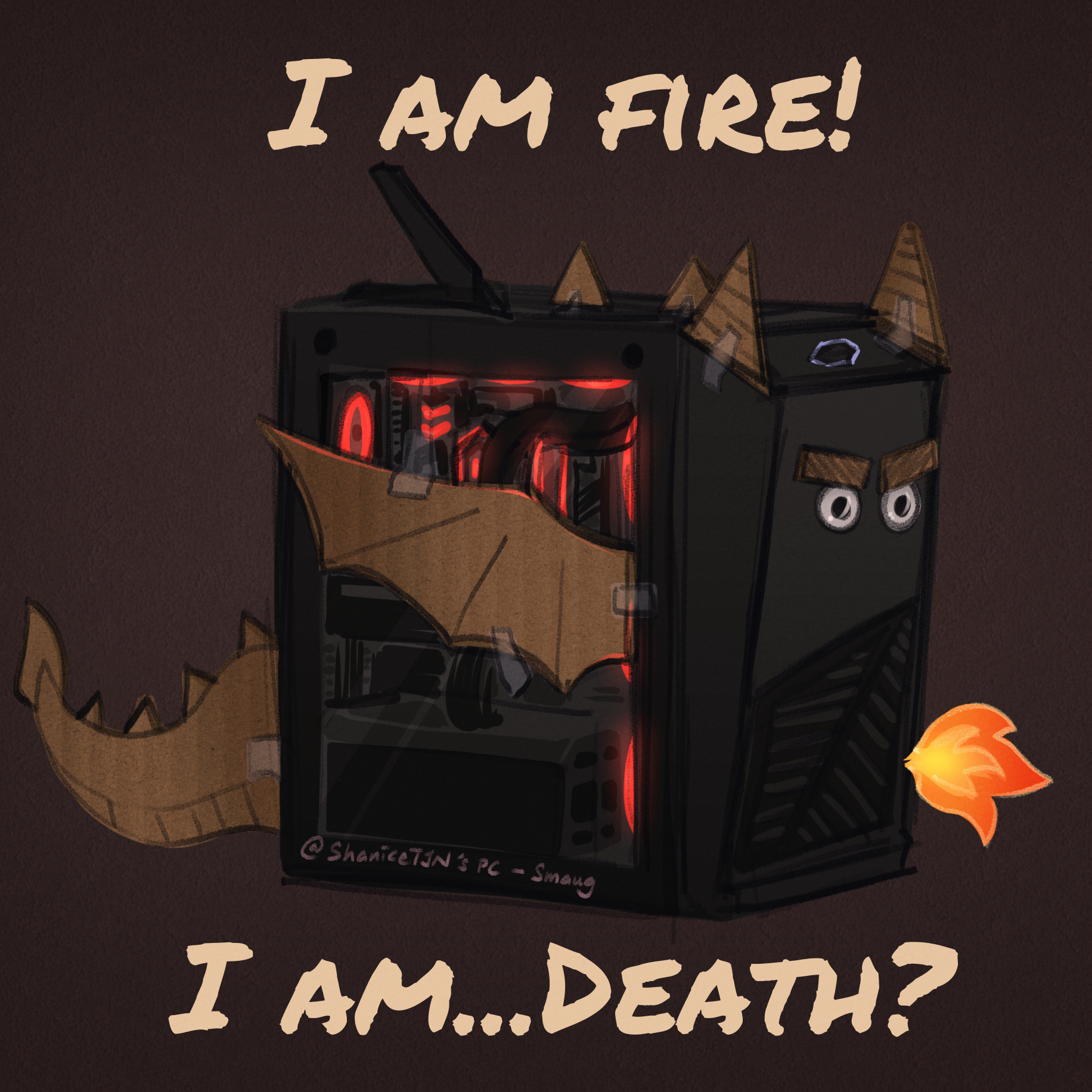 Thought my PC -- Smaug would be absolutely perfect for this Smaugust Challenge from [InkBlot](https://inkblot.art/profile/InkBlot)! >:D He is fire! He is...Death? 🔥 _Doodled - 28 August 2023_