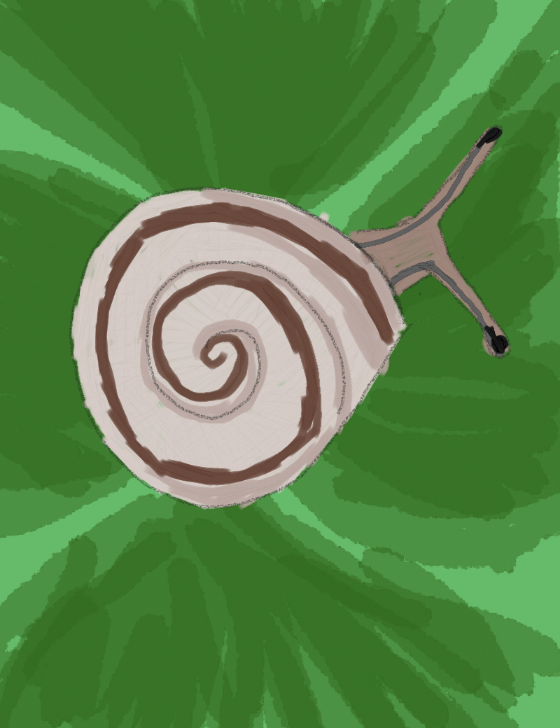[ID: A rough drawing of a snail against a green background. /ID]