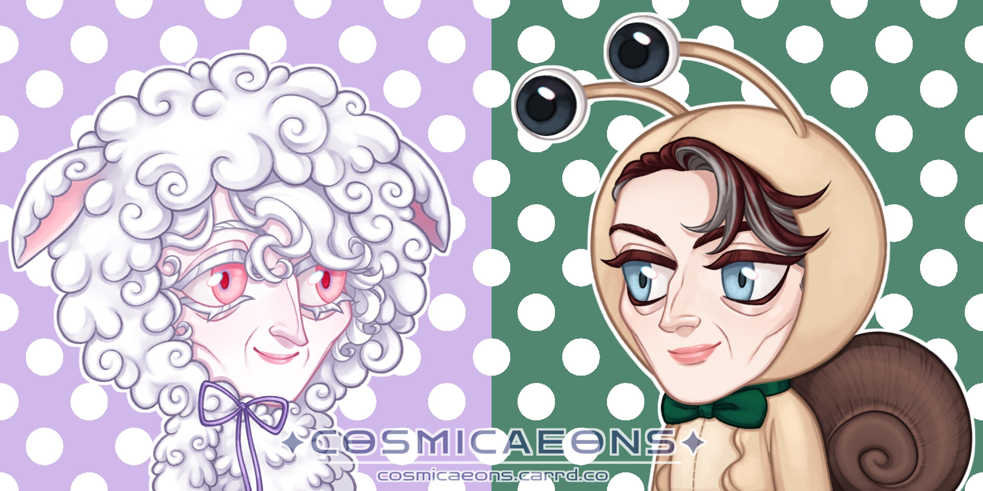 • This is one of the silliest things I’ve drawn and is of two characters that aren’t that silly. One of Ivan’s favorite animals are sheep and one of Drake’s (@heyaitsfreyah) are snails… so into kigurumis they go.