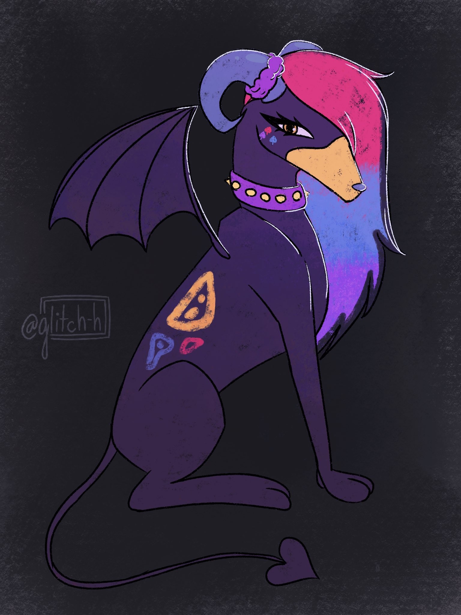 i was shown one of those templates to make a sparkledog oc or whatever so i did here they are <3 this is Fiasco, theyre pretty funky and can summon tentacles so uh...yeah...woohoo