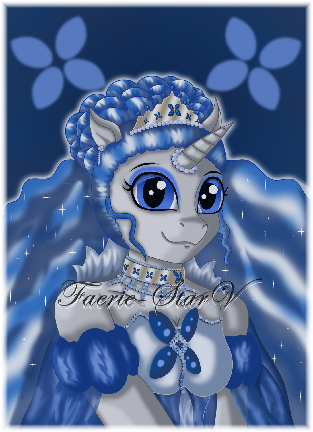 Majesty was my very first pic that I started for Royal Portrait. Since I was a kid, I've always been into royalty portrait paintings from the history books. That's when I decided to do a Royal Portrait series of my own. This one is Queen Majesty from G1 My Little Pony http://mylittlewiki.org/wiki/Majesty. Think of it as Princess Celestia from FIM but sadly, Majesty never appeared in the cartoon, only in UK comics. Her hair was inspired by Princess Celestia but I forgot to add the sparkles. XD I'll add them later. Her dress was based on Sailor Senshi Doll Divine flash game but with some changes. As for her crown and choker, it's actually white gold, not silver since she wore a gold crown but made it into white gold instead since it suits her better. I gave her some pearls and lapis lazuli gems. I'll get around to draw her a full body of her dress for everyone to see. :3 I also did a YouTube drawing video of her. https://www.youtube.com/watch?v=YmPKfFoW0HM Leave a like and comment! :3