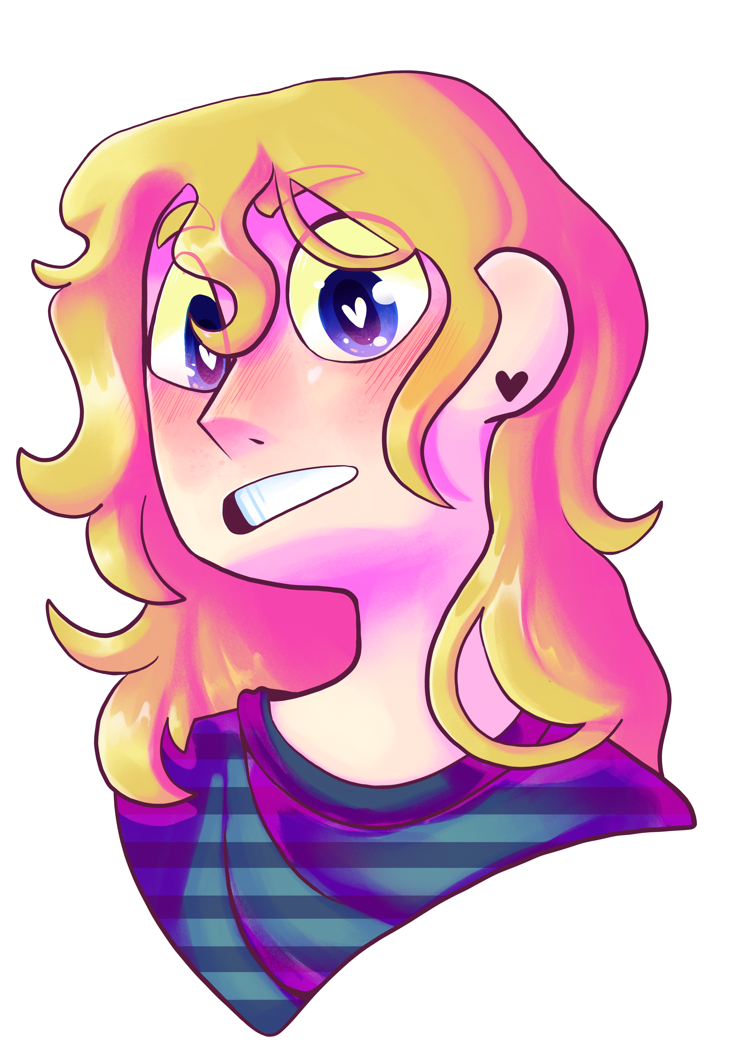 Posting some stuff to get a bit up to speed! This is Aaron!! my babygirl! and one of my oldest ocs, and of course he's a basic long-haired blondie with blue theme. innovative, never been done before✨ this was a simple one! I hadn't drawn in a while so i finished up some line art i had sitting around. pretty happy with it, unlocked some new coloring techniques and a new favorite brush,, [Here be the speedpaint for it!](https://youtu.be/y-TAe6imT4g?si=8VvY0fylWF12hczt)