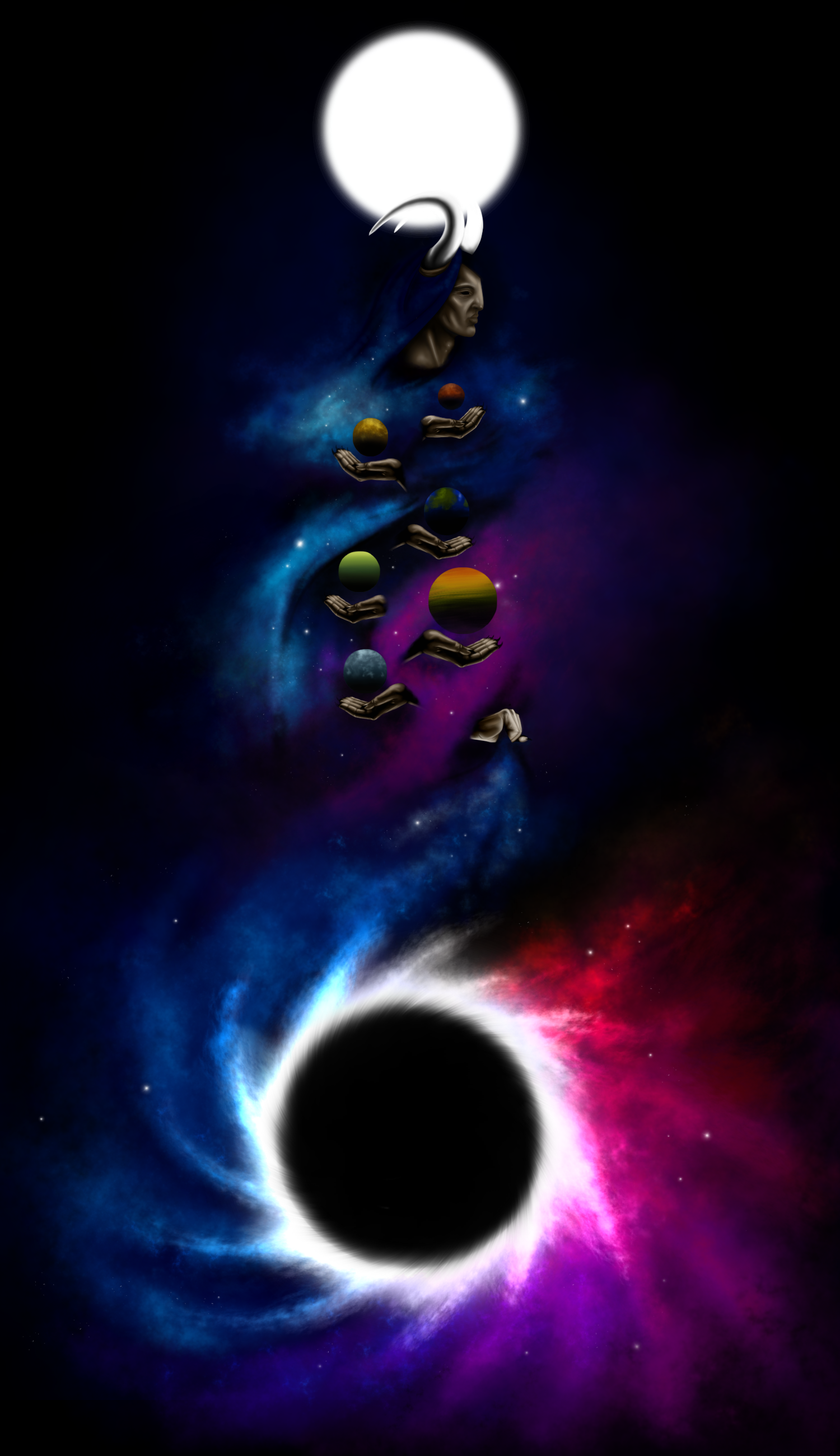 Mälgrez (meɪlgɾɛz), cosmos or space in Ënokhan and also the name of a thïsenyär. Far too busy harnessing the chaos of the universe, Mälgrez is a quiet one, quieter than the Void-God who forged him, but possibly one of the most important among his peers. At first glance, many would assume this deity analogous to Atlas. Mälgrez does not carry any interstellar objects upon his shoulders, but this divine is determined to protect the solar system Ënokh is in. Mälgrez is more of a guide to Andeamer, or any being who seeks his wisdom and knowledge. Andeamer are just as curious of the universe they inhabit as humans. To better understand the world, the universe, the inherent chaos of existence, they look to Mälgrez, the guide to the stars, the eternal scholar of the fabric of reality.