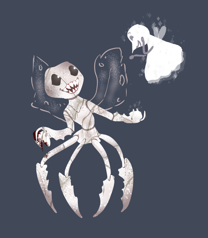 **Drawing of 2020 Monster/Wisp Challenge.** Copy/Paste Description: _Has anyone seen Hellboy 2? Then you will remember those creatures the "tooth fairies". They feed largely on calcium (flesh, bones, organs and other tissues), and due to its higher concentrations of the aforementioned mineral, they prefer the teeth (hence their name). When attacking live prey, they target a victim's teeth, though they will eat their prey until nothing remains but droppings._ _Of course this fairy is not exactly the same. they feeds on the teeth but for fresh dead people, from time to time they help a human with a tooth that needs to be removed, they favorites are the healthy teeth of criminals, the more heartless, violent and evil the owners teeth the better! They especially love ripping at night._ _They are the biggest, creepy, not so cute cousin of the classic tooth fairies that children love so much. These little things are very judgmental with their teeth and give the children money depending on the quality, while their cousins think that any tooth is welcome, because are food its important._ _Sometimes as thank you gif for a data, info, and things like that, these cousins give each other teeth of their preferences._
