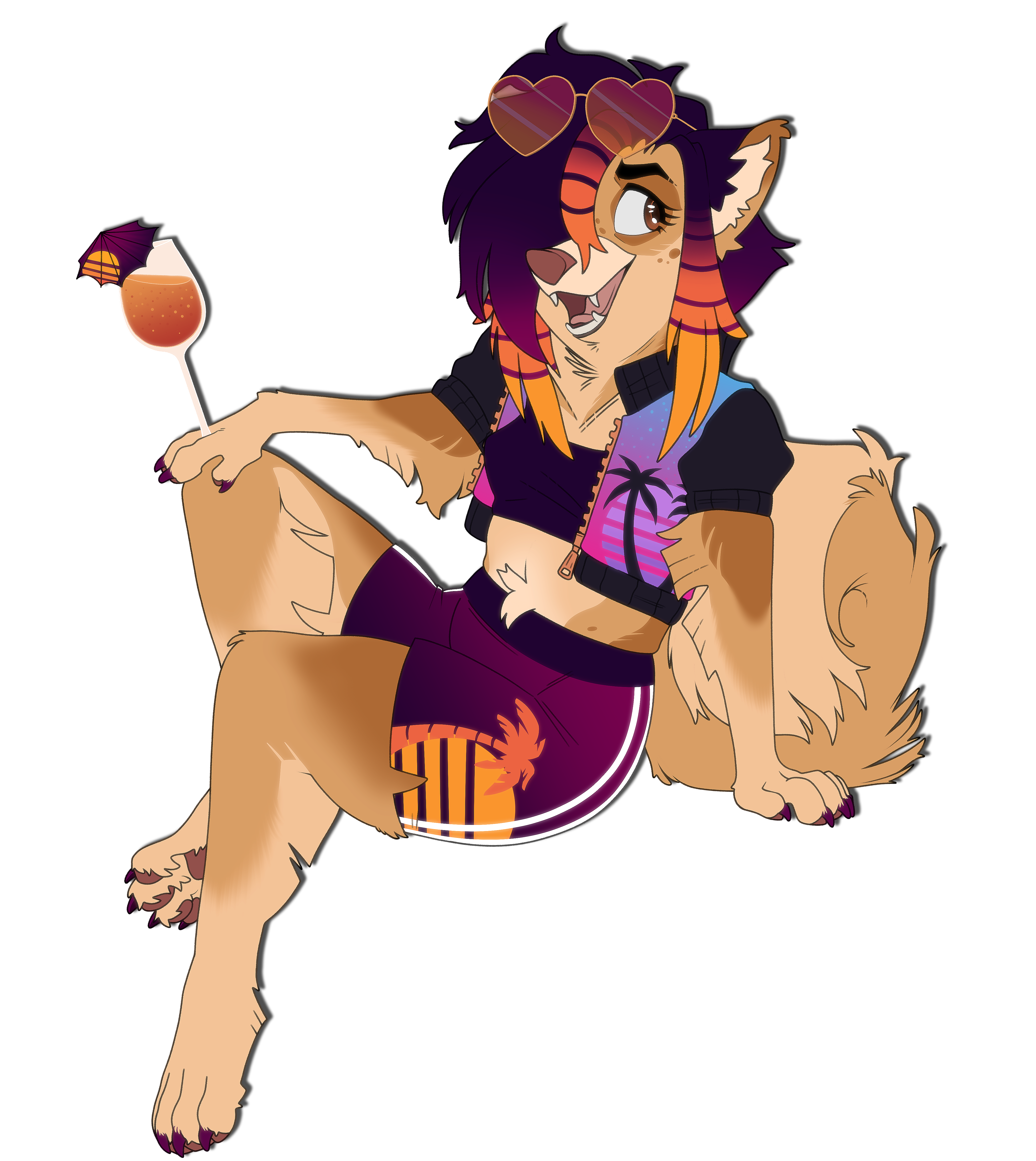This is my fursona, Vapor! He is an alien canine obessed with vaporwave/outrun aesthetics, frogs, coffee, and all things alien!