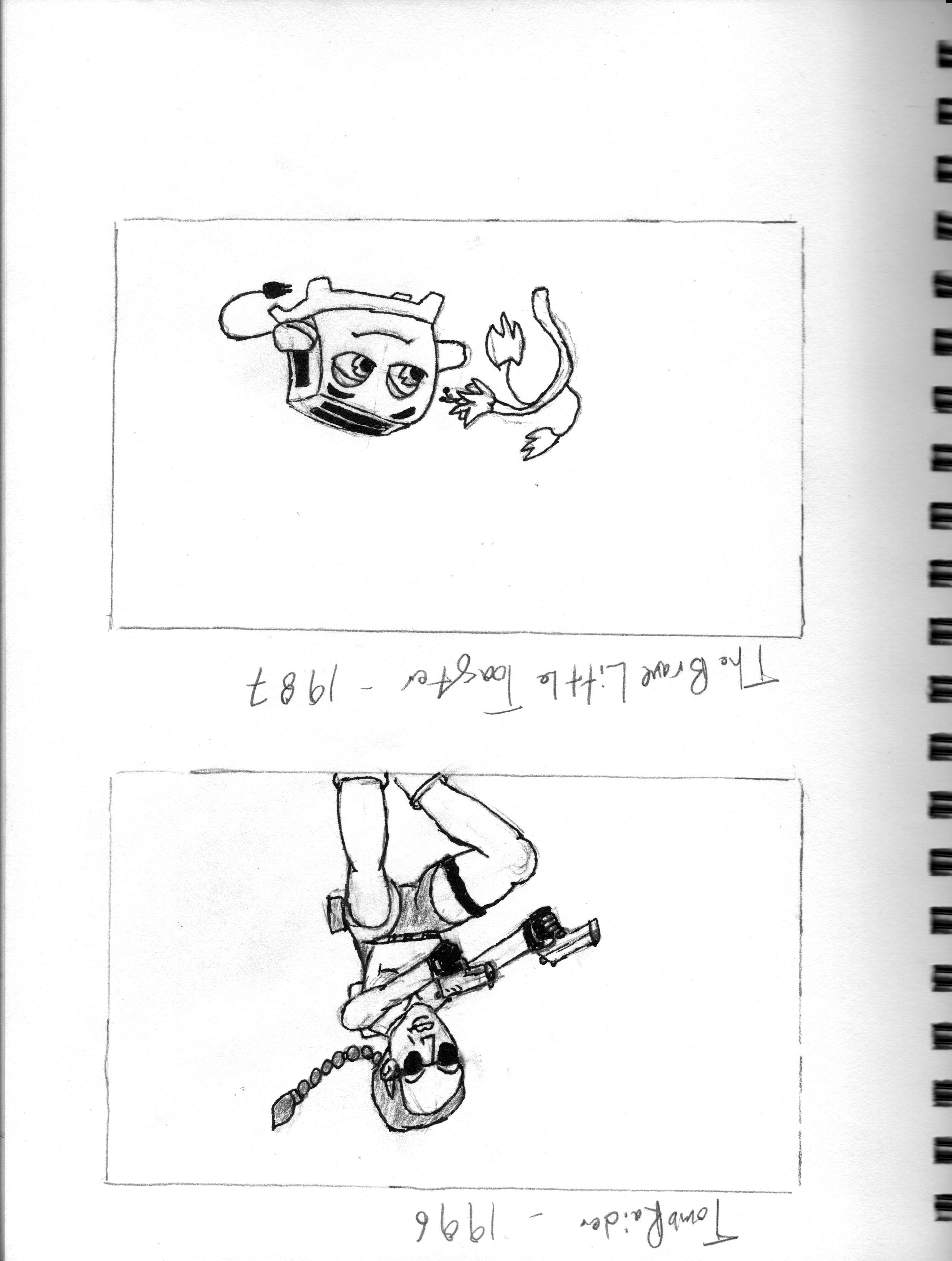 • Here's some sketches I've done from single frames of movies, and in this case one videogame.