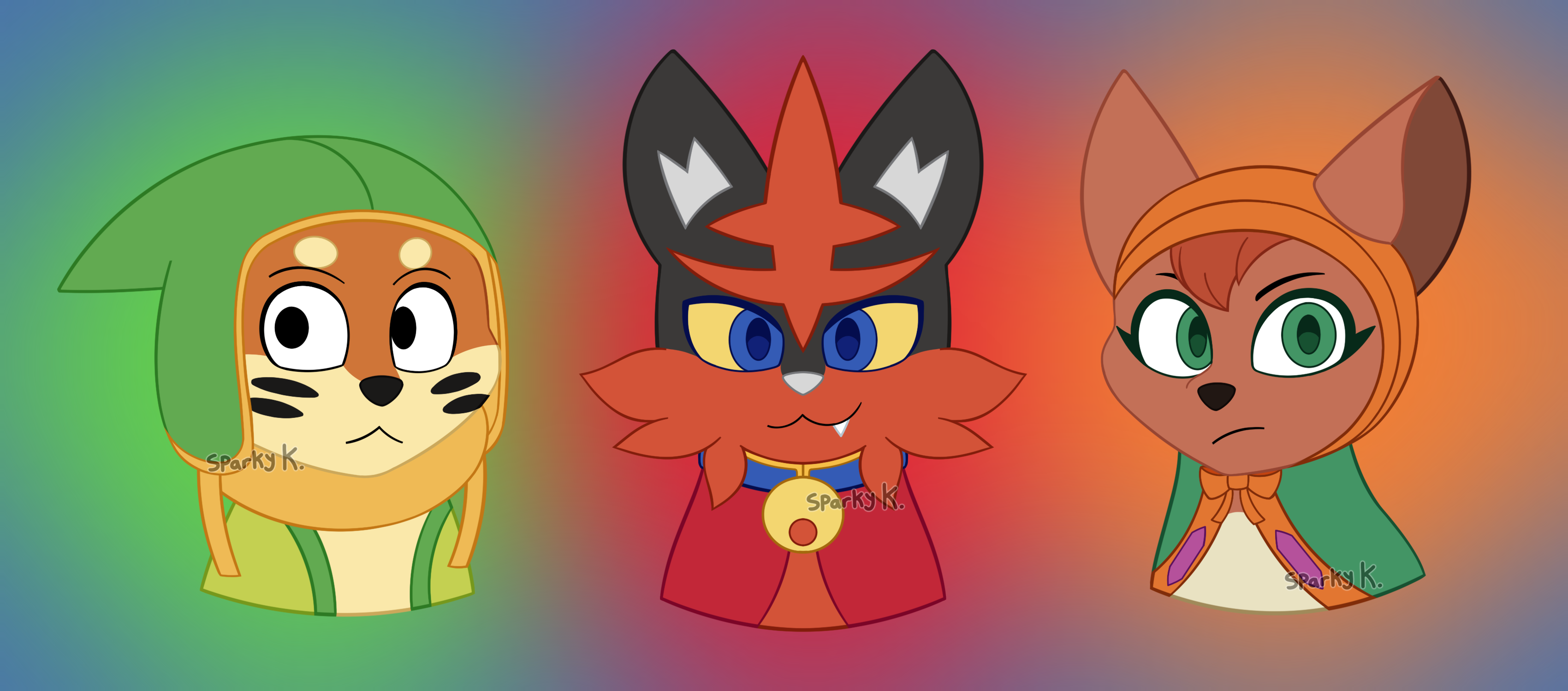 • I'm in a Pokemon tabletop game (called "Pokerole") with three other players and a GM. One of the first things I drew after setting up my tablet again, was all of our starters! At least, as they are currently! They are: