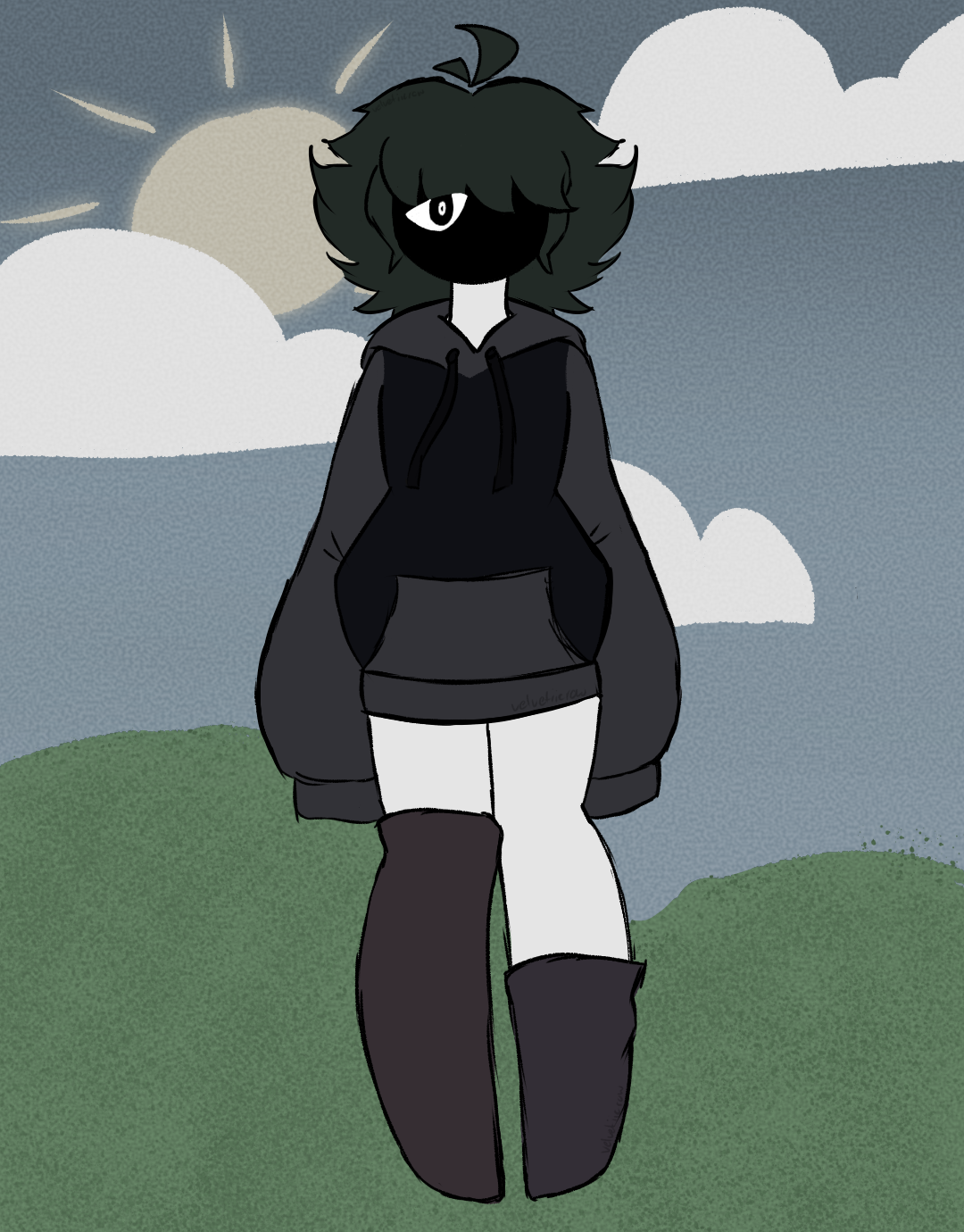 • This is Wilt (they/them). They're a weirdcore OC I haven't drawn in a hot minute. This isn't their typical outfit, but it's a nice one.