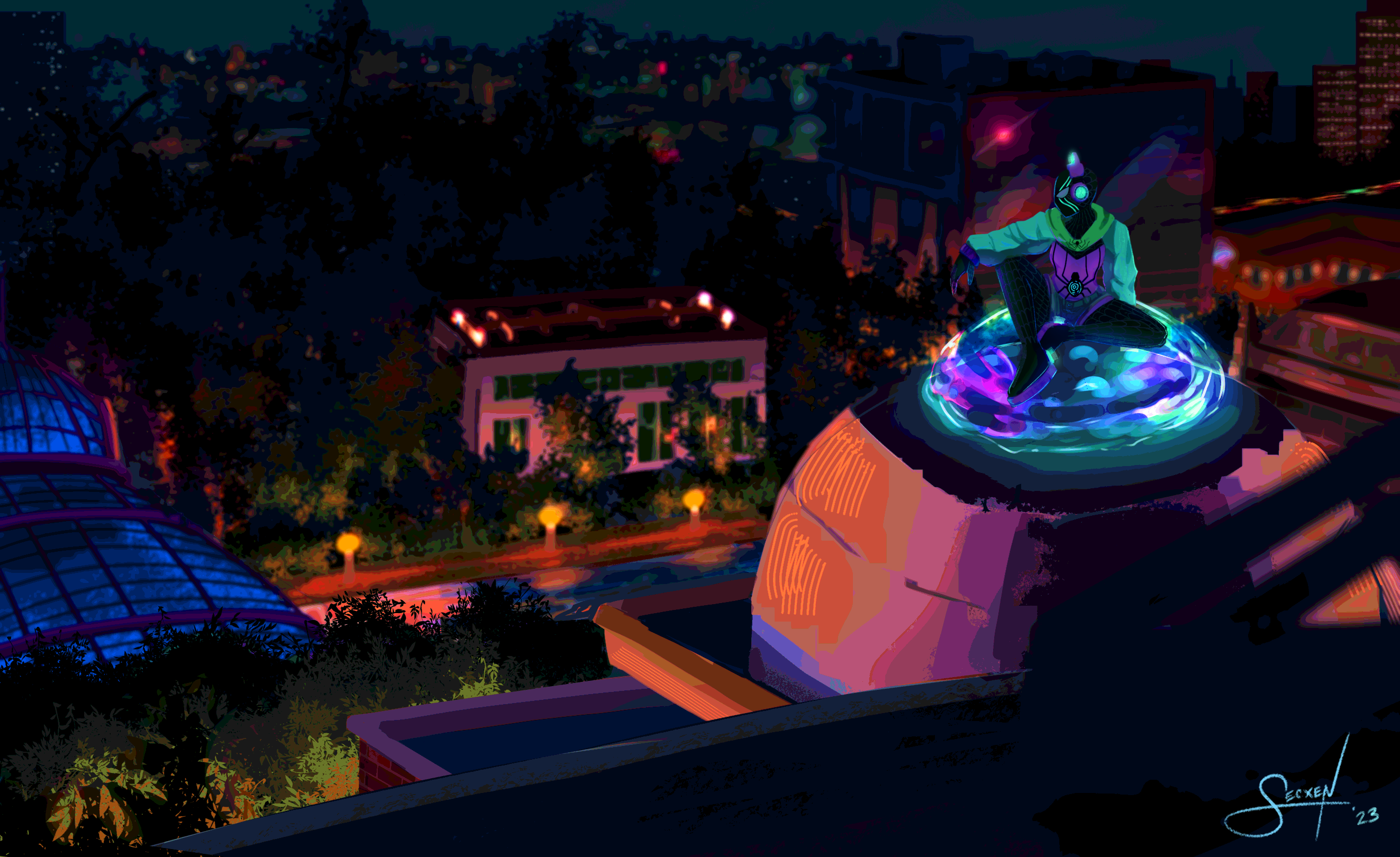 Listening to the sound track for Spider-Man: Across the Spiderverse has really got me into a moody art type of vibe. I'll probably spend some time doing more night scenes for fun~Was inspired to do a night scene after working on a portrait for my spidersona: Splat. I eventually took out the portrait and went with a diff composition ------ Listening to the sound track for Spider-Man: Across the Spiderverse has really got me into a moody art type of vibe. I'll probably spend some time doing more night scenes for fun~0 Comments 0 Shares 25 Views -