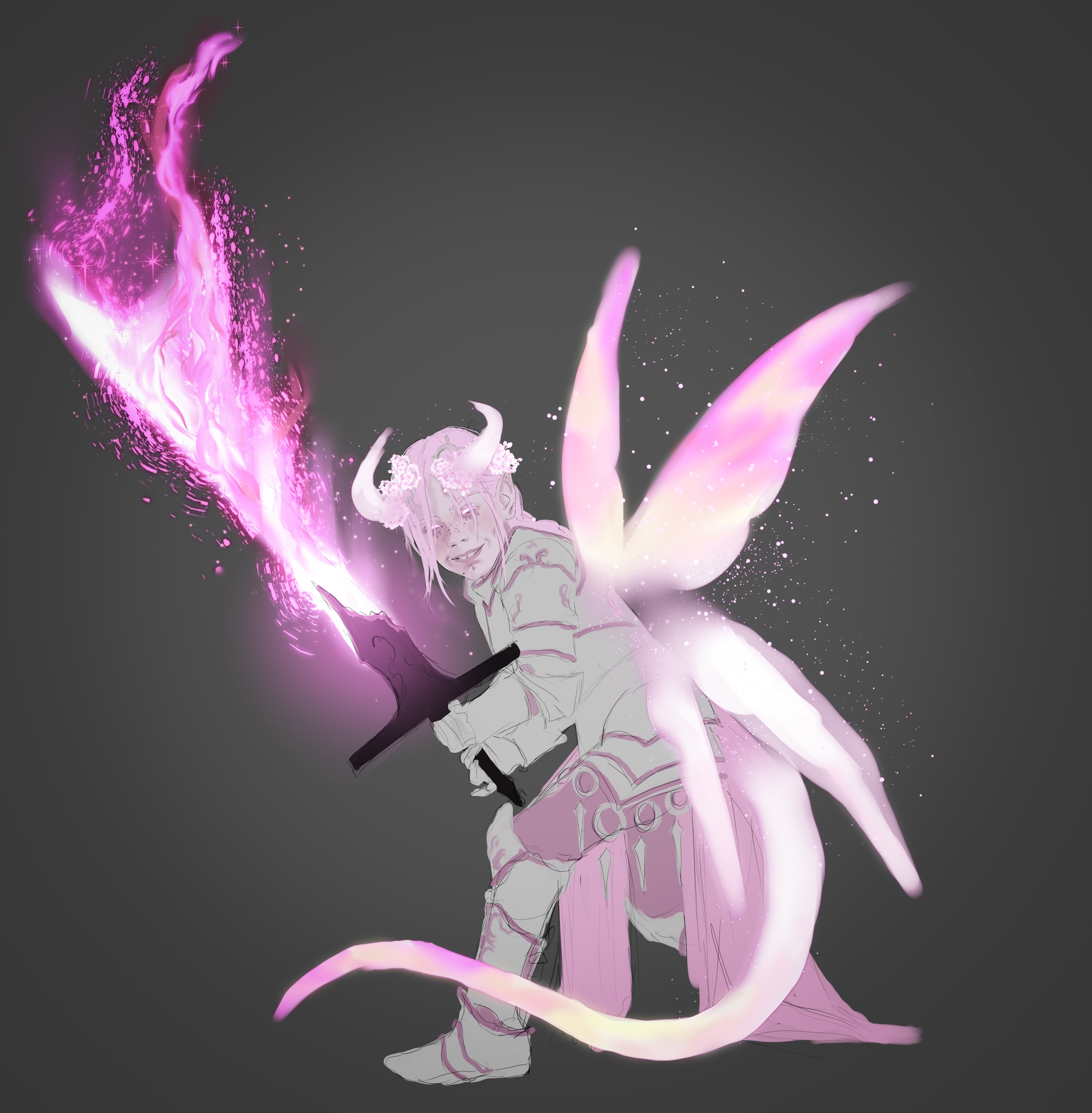 A character that I'll be playing, child of my first ever roleplaying character and his archfey patron. Their sword being made from one piece of the legendary broken sword of their fey parent and their powers manifesting as some kind of faerie dragon bits thanks to their dad's draconic sorcerer blood. I just like pinkA character that I'll be playing, child of my first ever roleplaying character and his archfey patron. Their sword being made from one piece of the legendary broken sword of their fey parent and their powers manifesting as some kind of faerie dragon bits thanks to their dad's draconic sorcerer blood. I just like pink0 Comments 0 Shares 2 Views