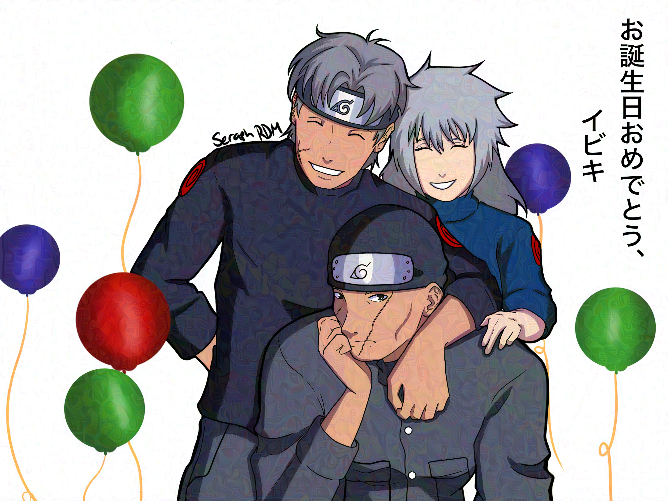 Alt Text: A drawing of Hiiragi leaning over with his arm over Ibiki's shoulder and grinning. Tsukiya is on the other side of him with their hand on Ibiki's shoulder, also smiling. Ibiki, on the other hand, is sitting with his face resting in his hand and he has a Not So Amused expression on his face, as if he wants to throw both of them into a genjutsu for this. He probably will.Alright so March 20 was Ibiki's spawn day, I'm a few days late but I think he's not worried about it at all. I don't think he wants to celebrate anyway. Too bad, Hiiragi and Tsukiya are there to make him feel old as hell 😃 Feel the love, Ibiki. FEEL IT. Alt Text: A drawing of Hiiragi leaning over with his arm over Ibiki's shoulder and grinning. Tsukiya is on the other side of him with their hand on Ibiki's shoulder, also smiling. Ibiki, on the other hand, is sitting with his face resting in his hand and he has a Not So Amused expression on his face, as if he wants to throw both of them into a genjutsu for this. He probably will.0 Comments 0 Shares 4 Views
