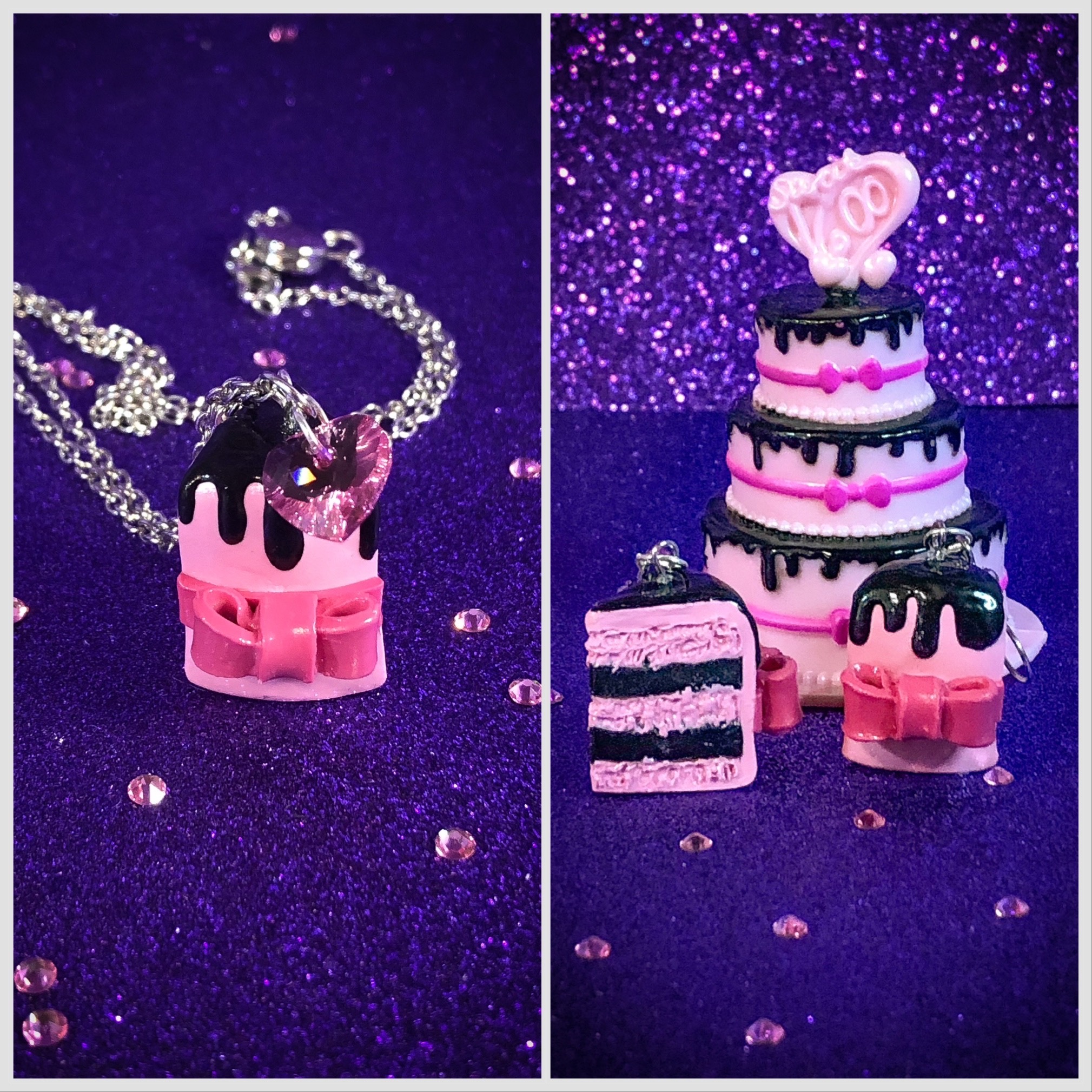 I thought with Valentine's Day (and also Draculaura's birthday) coming up, Why not make my first post be my Sweet 1600 Cake Slice Jewelry! Matching earrings and necklaces inspired by Draculaura's sweet 1600th birthday cake from monster high!