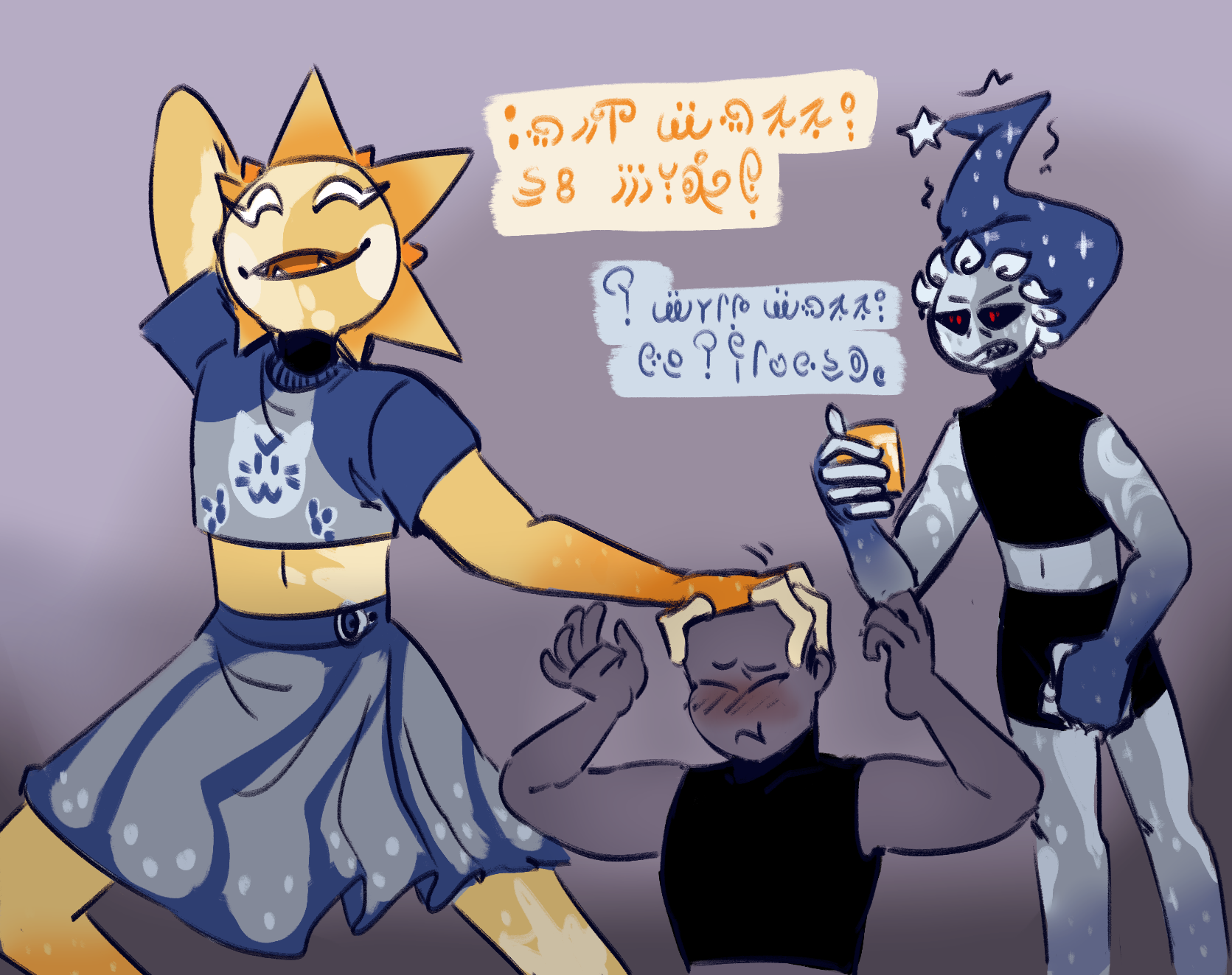 [@maidiemoods](https://maudiemoods.tumblr.com/)ds (Tumblr link) I Just felt like throwing some clothes on Sun[ID: Digital art of stardust Sun carelessly rubbing Y/N’s head saying “Don’t worry so much!” With Stardust Moon holding a mug behind them saying “I will worry as I please.” ID end] [@maidiemoods](https://maudiemoods.tumblr.com/)ds (Tumblr link) I Just felt like throwing some clothes on Sun0 Comments 0 Shares 7 Views -