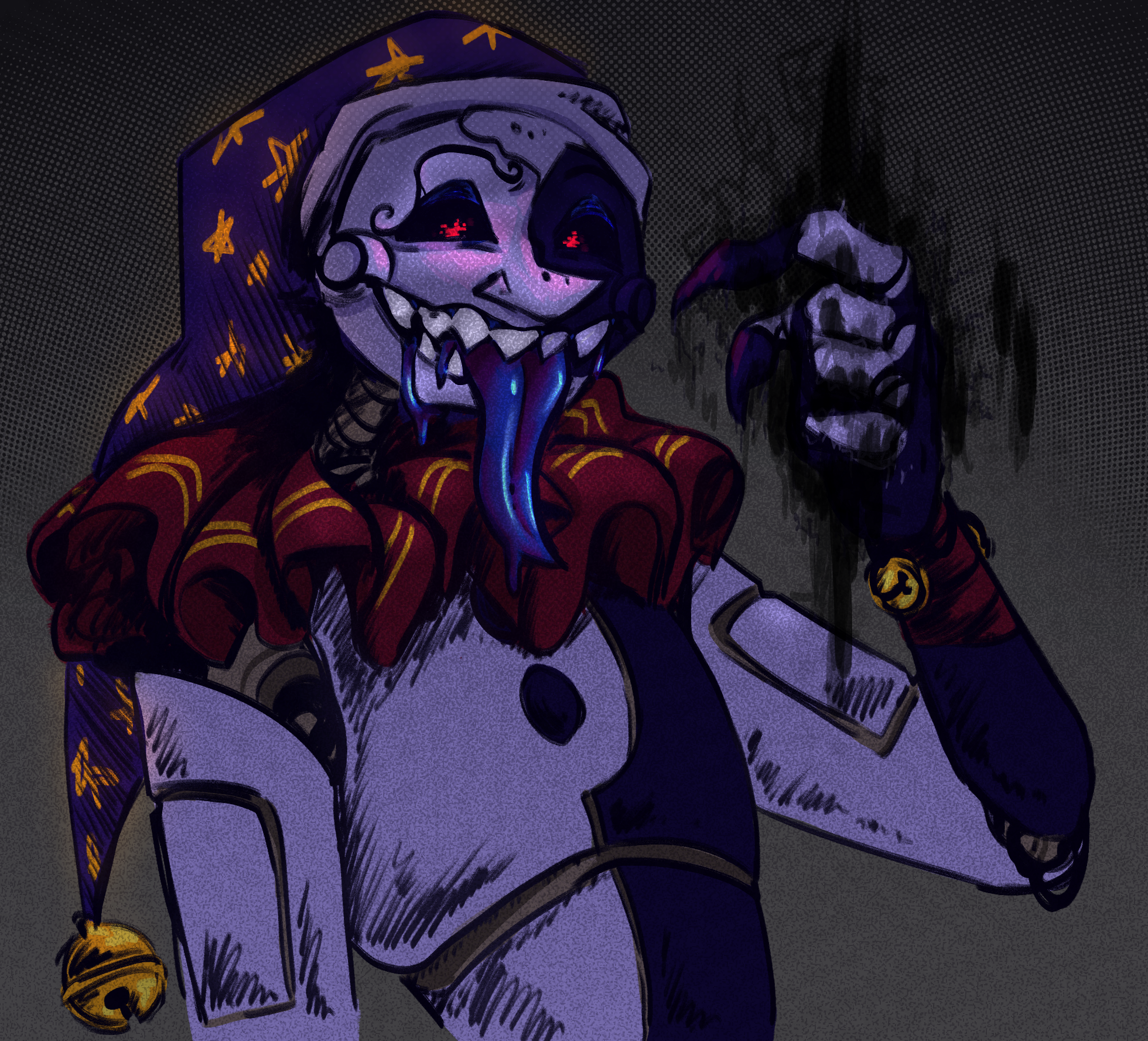 Practicing teeth and ruffles but I really liked whatever I was do'in here so oops[ID: Moon in the dark with his tongue out, drooling a bit with a wide sharp toothed grin. He's holding his hand up but it's obscured by a patch of blackness that he may or may not be holding. His eyes glow pinkish red and look a little glitched. End ID] Practicing teeth and ruffles but I really liked whatever I was do'in here so oops0 Comments 0 Shares 7 Views