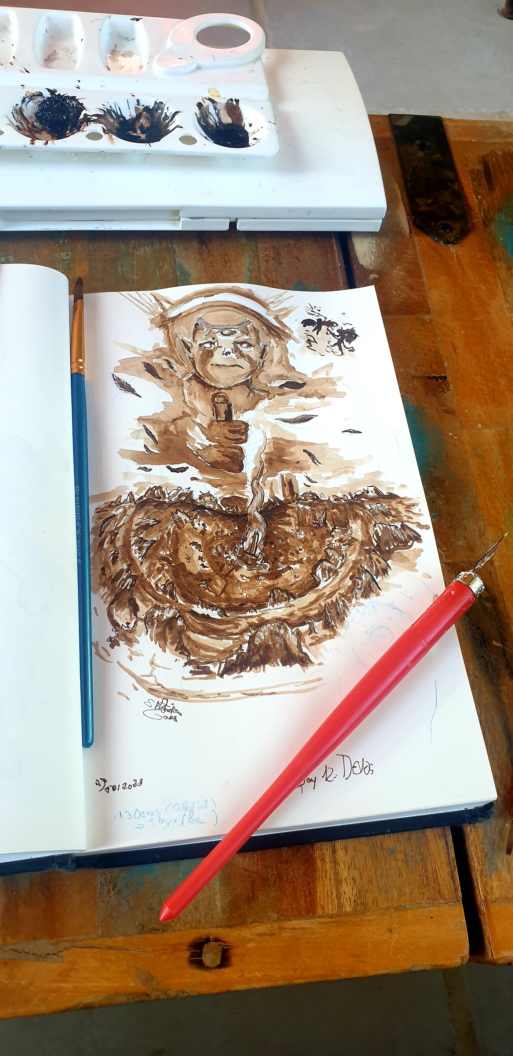 _Lore around the drawing: Stoyx (he/they) was a celestial who failed following his deity... got turn into sentiament weapon crashed into the desert... heat was so hot that sand beneath impact became glass. __Continuation of 2022 list_ I admit devas and celestials are same/similar , so a bit of my homebrew lore. _Lore around the drawing: Stoyx (he/they) was a celestial who failed following his deity... got turn into sentiament weapon crashed into the desert... heat was so hot that sand beneath impact became glass. _0 Comments 0 Shares 25 Views -