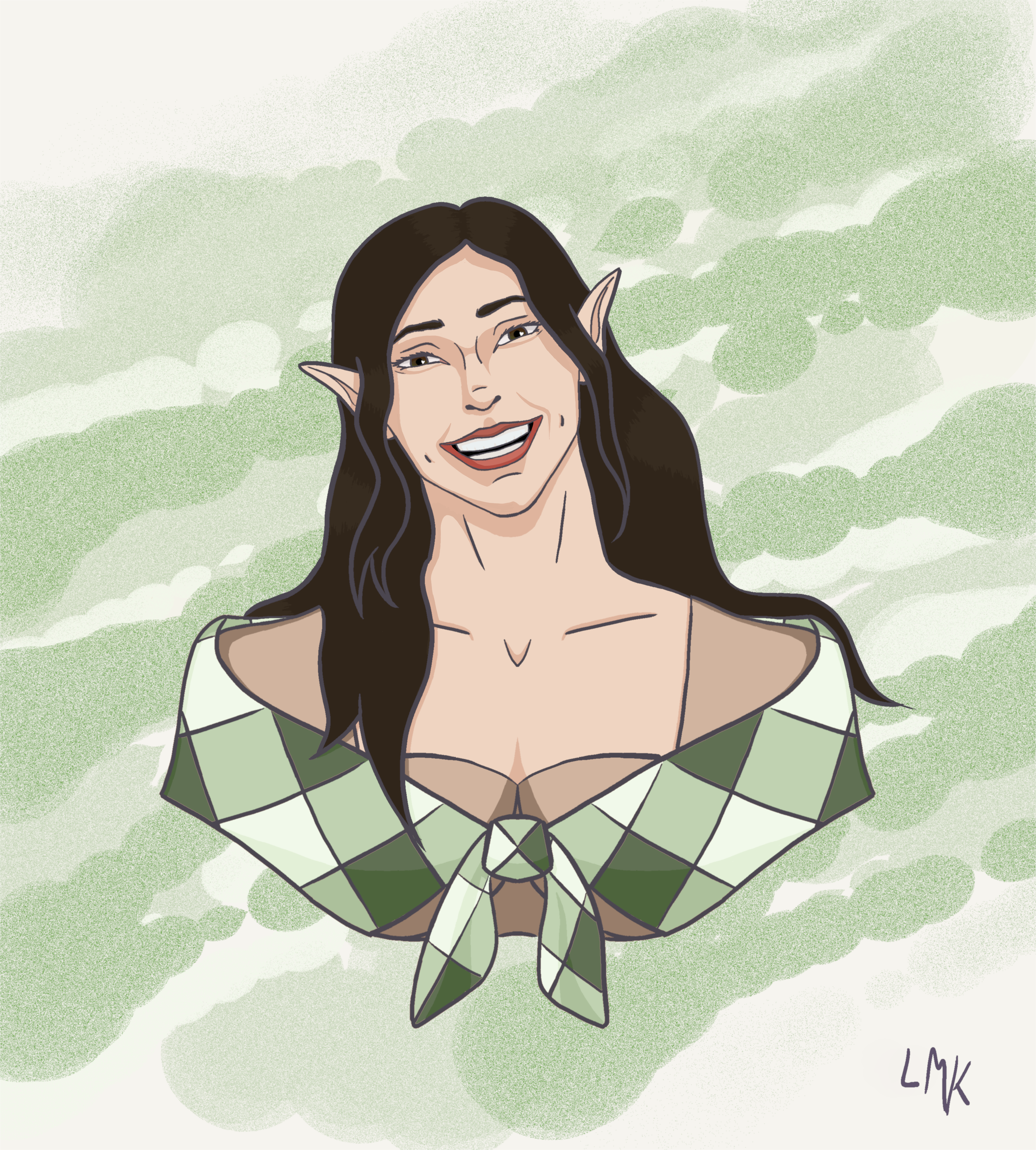 An expression study of my Dungeons & Dragons character Phasmyn Wicander. She is a half-elf Arcane Archer fighter. About four years before the start of the campaign, she was a happy shopkeep and loving wife, but all of that changed when her husband died. Since then, she closed herself off from others and joined the cavalry, leaving her soft cottagecore dresses behind for armor and weapons.