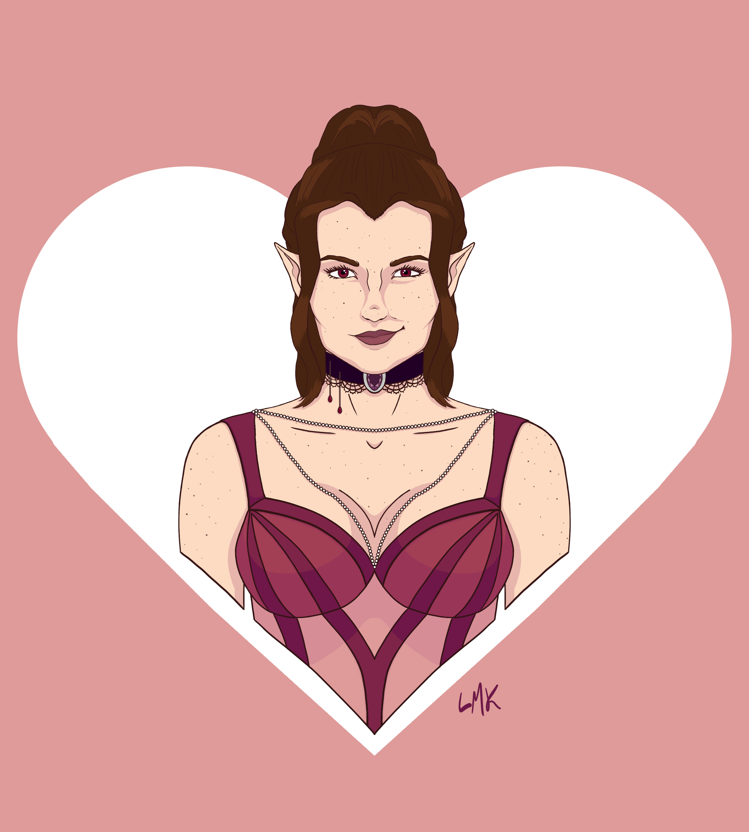 ~~Yes, she is named after the fish.~~I was invited to join the sequel to my friends' Curse of Strahd Dungeons & Dragons campaign. My character is Remora Fallow, a dhampir bard/Psionics wizard. She doesn't realize that she is a dhampir, and thinks all of her psionic powers come from her wizardry - not any supernatural vampire magics. Nevertheless, she keeps the bite scar on her neck covered up, because it makes her vampire hunter boyfriend a little uncomfortable. As a professional cabaret singer, she always wears the flirtiest little grins and the most revealing gowns, like this one, inspired by an [Official Hambly](https://www.instagram.com/officialhambly/?hl=en) number. Digital art created using Gimp 2.0 and a Gaomon tablet. ~~Yes, she is named after the fish.~~0 Comments 0 Shares 28 Views