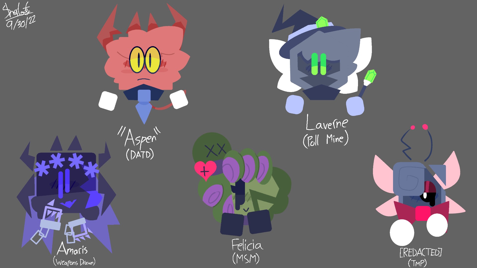 Since it's (almost) Spooky Month ~~*in my timezone at least*~~, why not draw 5 of my ~~spooky~~ Jackbox Host designs for ze occasion.Since it's (almost) Spooky Month ~~*in my timezone at least*~~, why not draw 5 of my ~~spooky~~ Jackbox Host designs for ze occasion.0 Comments 0 Shares 3 Views
