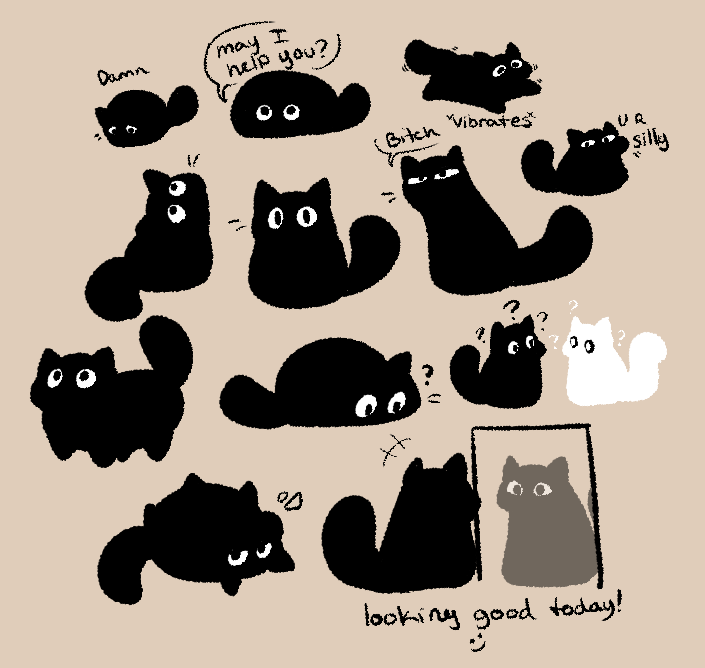 Just a bunch of doodles of a chunky looking black cat I did out of boredom back in July, they were fun to doodle since I just needed a simple shapeJust a bunch of doodles of a chunky looking black cat I did out of boredom back in July, they were fun to doodle since I just needed a simple shape0 Comments 0 Shares 3 Views