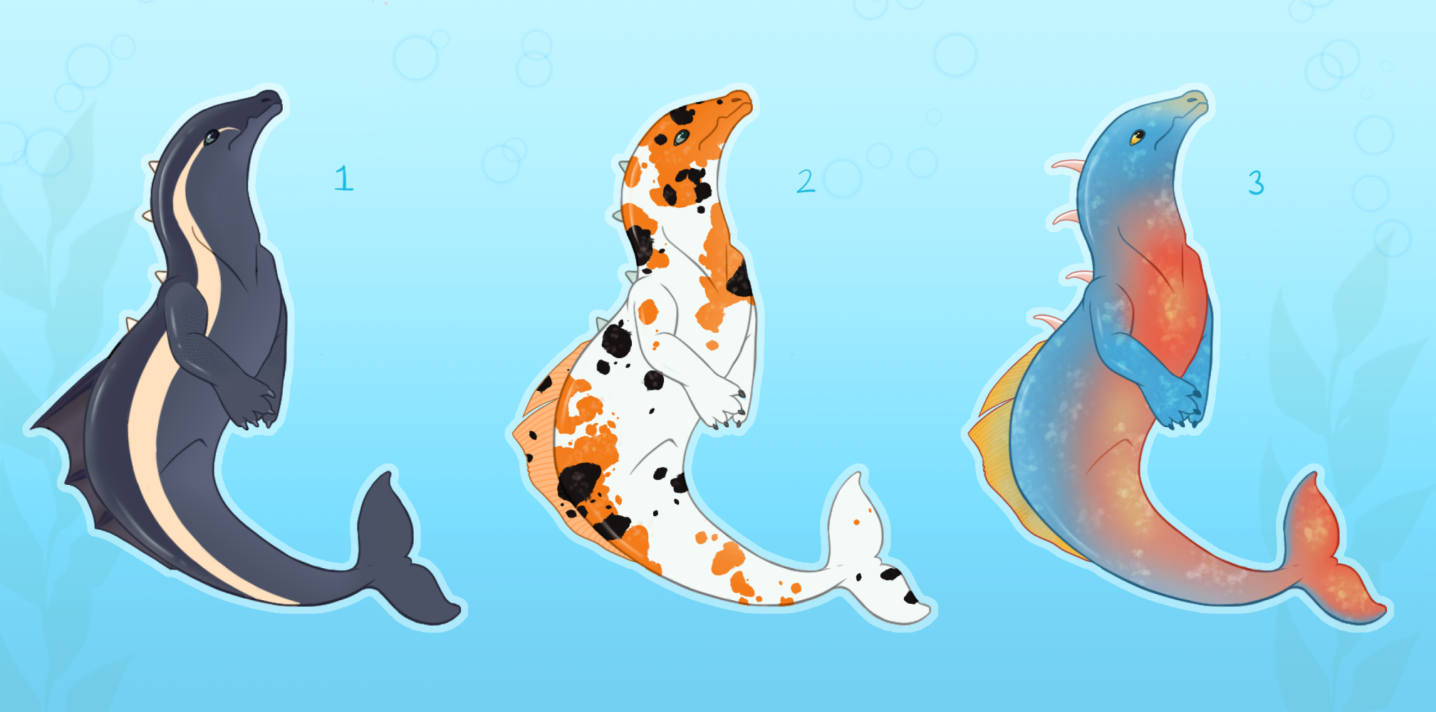 Adopts cannot be resold for more than they were purchased forFinished up a sea dragon concept sketch I had and made some designs! I love how these guys turned out. <3 $15 USD each 1) sold 2) OPEN 3) OPEN Payment via Paypal Payment must be made within 48 hours or the adopt will be relisted You will receive a full-size PNG of the character after payment is received After purchase, you may change the design however you'd like Adopts cannot be resold for more than they were purchased for0 Comments 0 Shares 24 Views -
