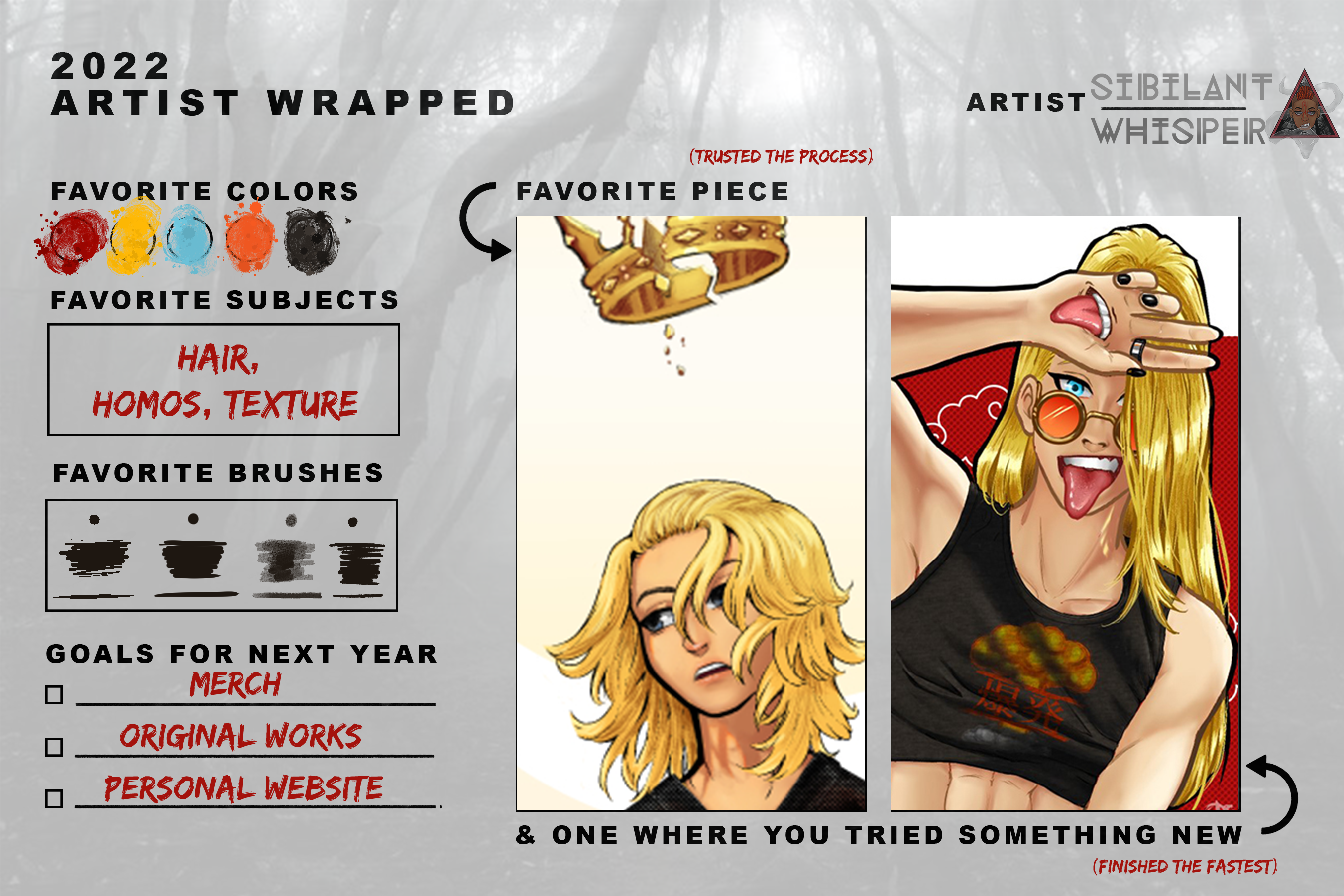 I got more comfortable with coloring this year, experimenting and pushing myself with details.