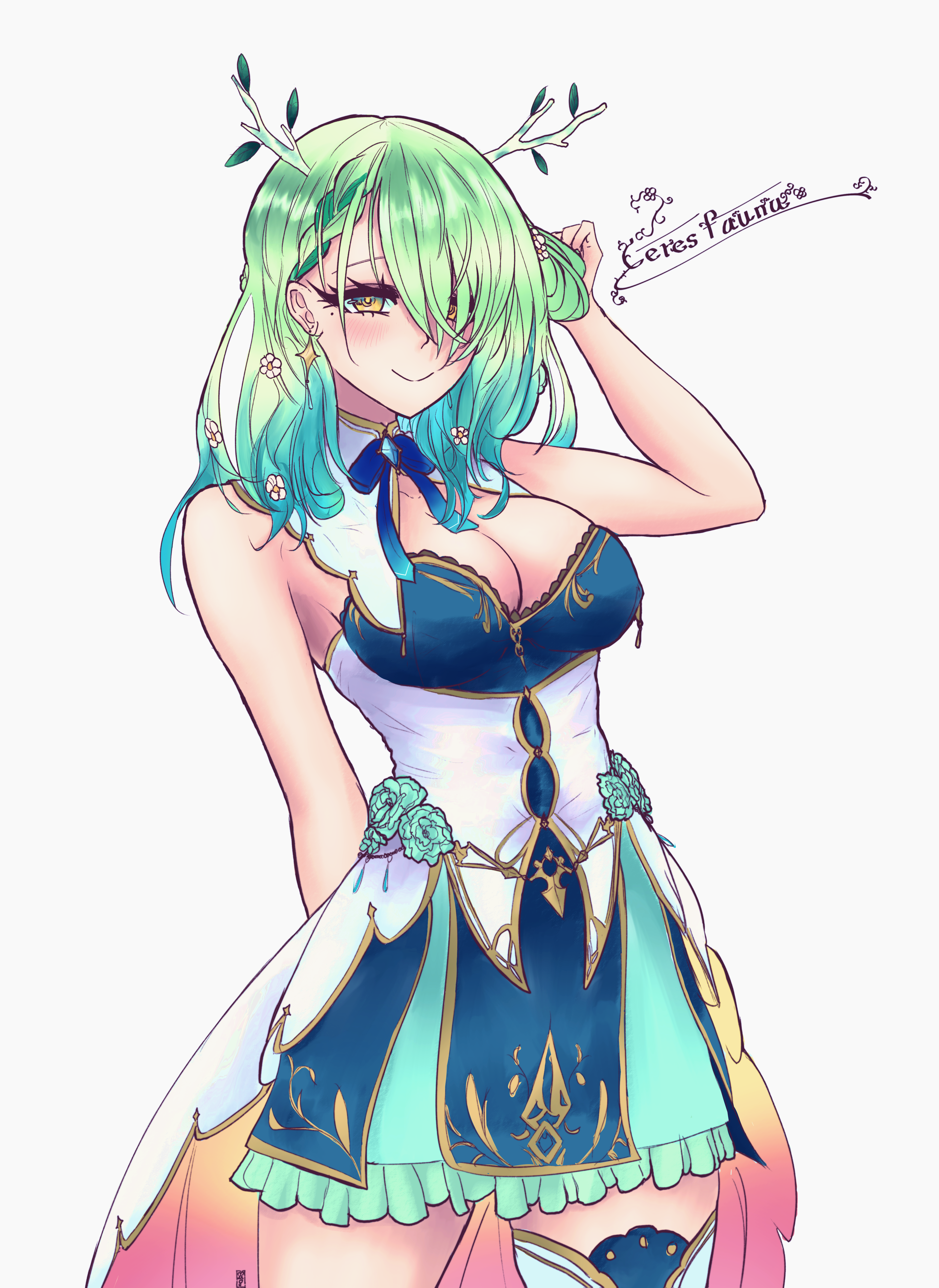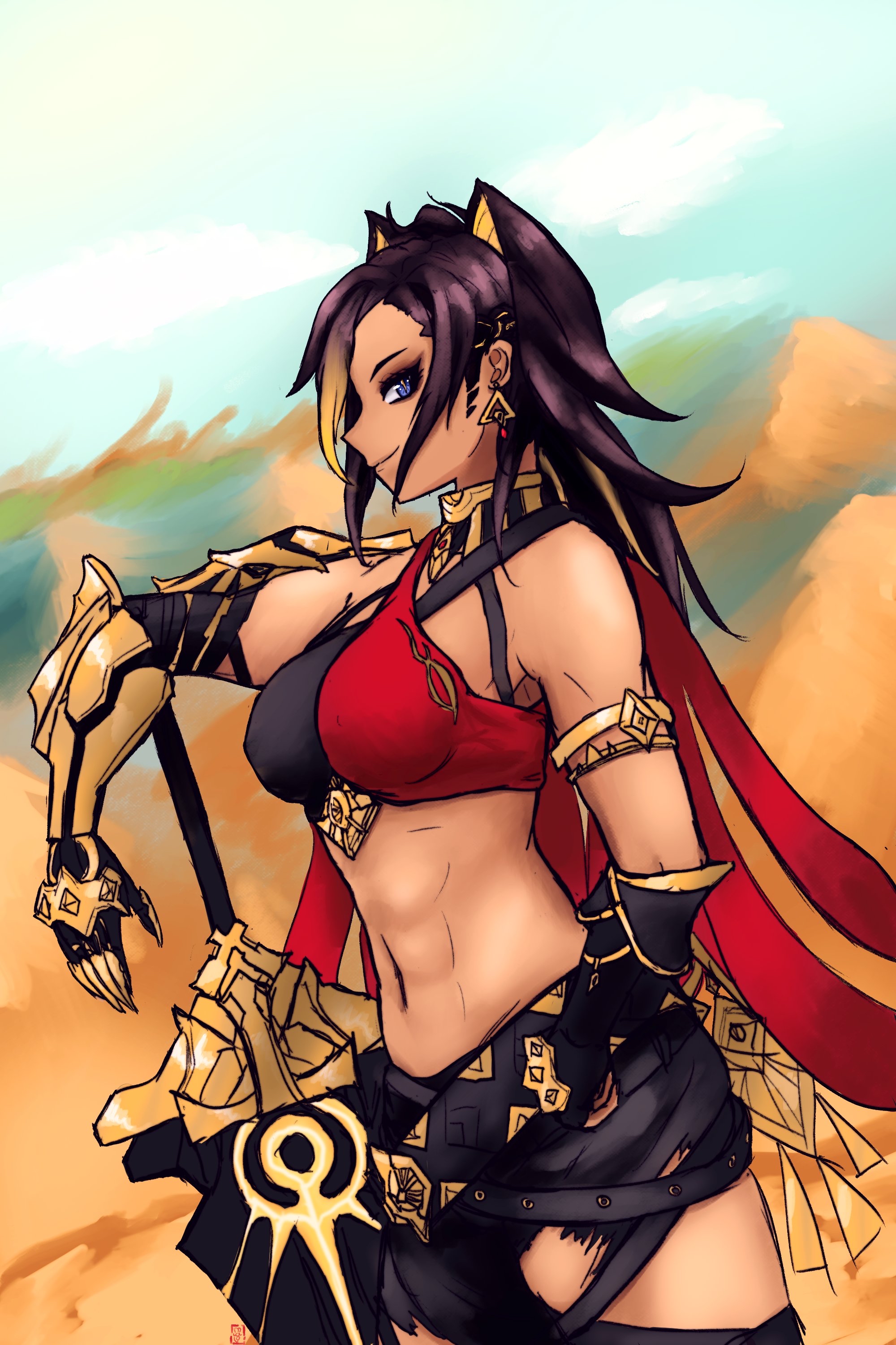 Digital Piece I made of Dehya, really proud of the background painting as I’d never really done that before. :3