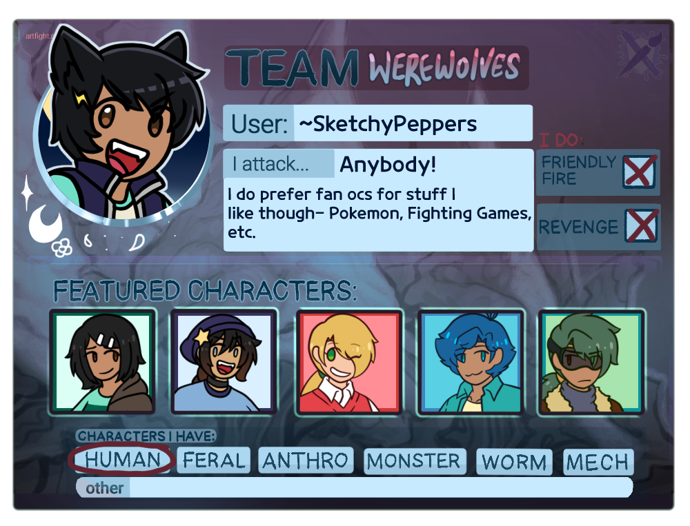 i'll be honest i've had this account for a while but never got around to using it so i'm using [artfight](https://artfight.net/~SketchyPeppers) to break this in! come check out my account if you can!i'll be honest i've had this account for a while but never got around to using it so i'm using [artfight](https://artfight.net/~SketchyPeppers) to break this in! come check out my account if you can!0 Comments 0 Shares 3 ViewsPlease log in to like, share and comment!