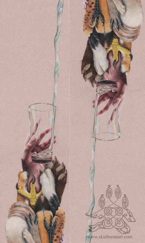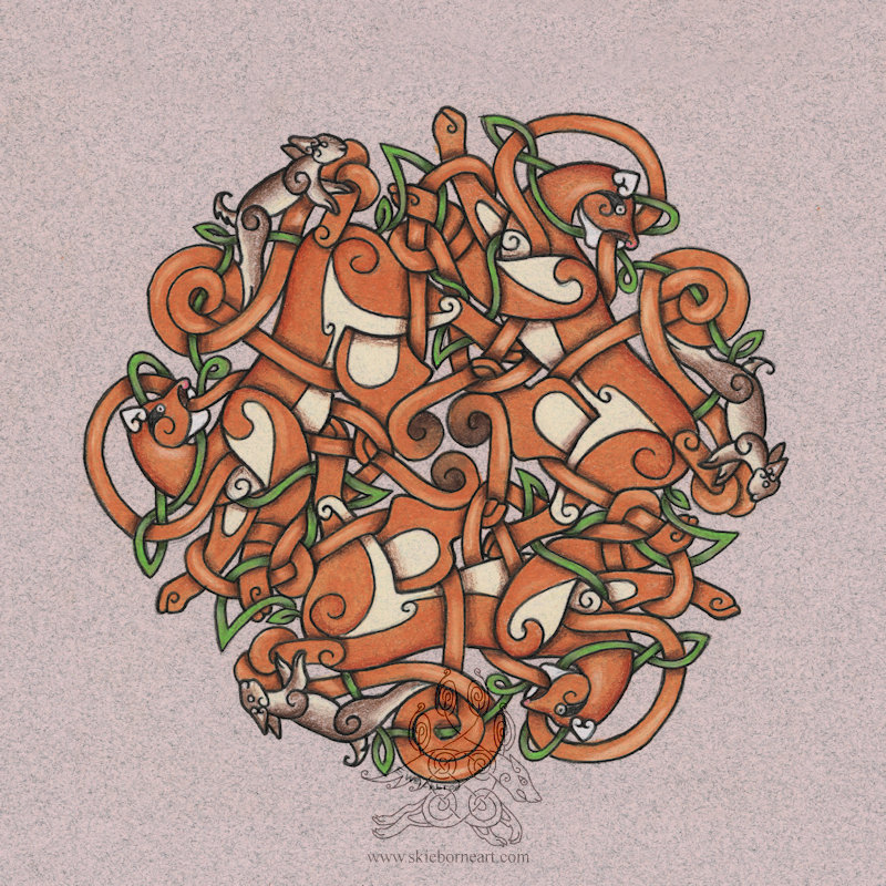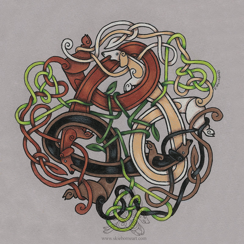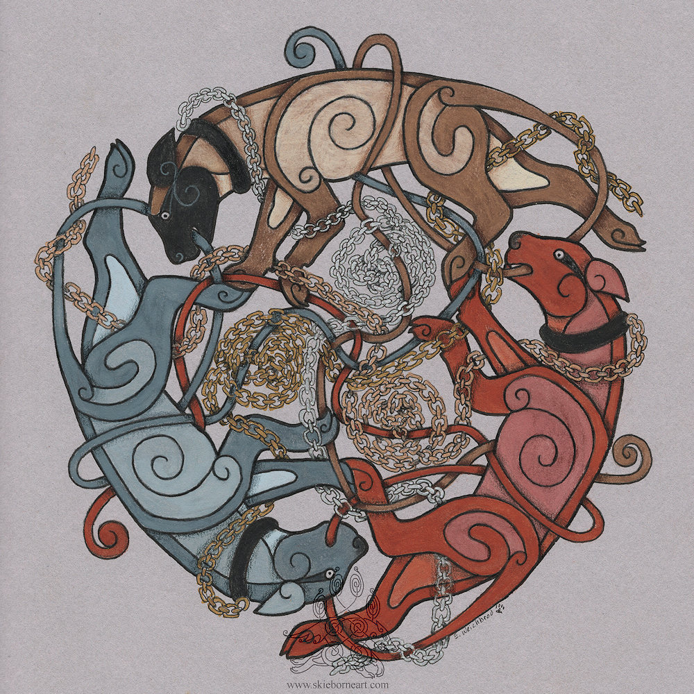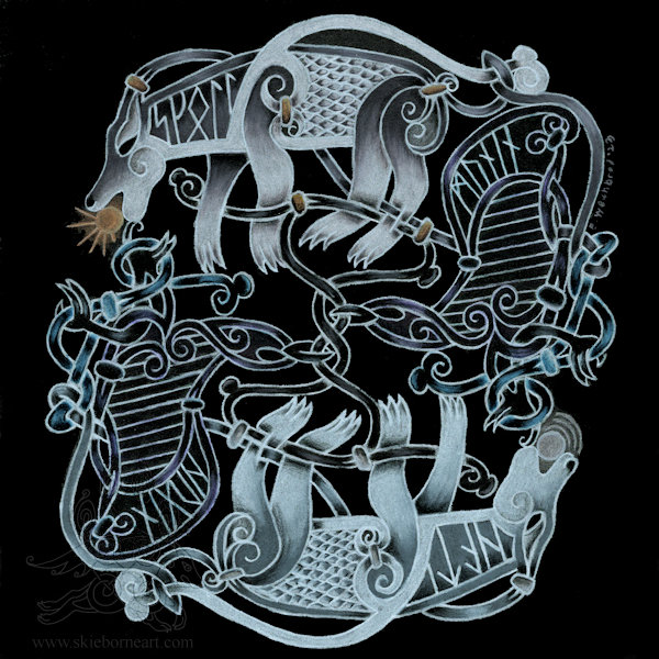 The runes in each animal are the names - Hati, Skoll, Hugin and Munin.6. 5 inches x 6.5 inches Colored Pencil on Strathmore Black 400 Series The runes in each animal are the names - Hati, Skoll, Hugin and Munin.0 Comments 0 Shares 7 Views -