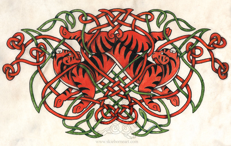 English Mastiff, French Mastiff and Neapolitan Mastiff with knotwork chains.