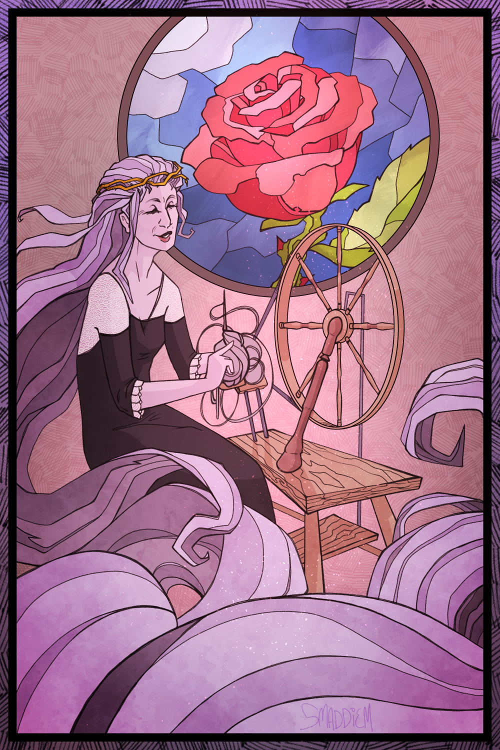 Princess Irene's Great, Great Grandmother who lives in the attic eating pigeon eggs and spinning magic thread.From chapter 3 of The Princess and the Goblin by George MacDonald: "She was dressed in black velvet with thick white heavy-looking lace about it; and on the black dress her hair shone like silver. There was hardly any more furniture in the room than there might have been in that of the poorest old woman who made her bread by her spinning. There was no carpet on the floor—no table anywhere—nothing but the spinning-wheel and the chair beside it." --- Princess Irene's Great, Great Grandmother who lives in the attic eating pigeon eggs and spinning magic thread.0 Comments 0 Shares 2 ViewsPlease log in to like, share and comment! -