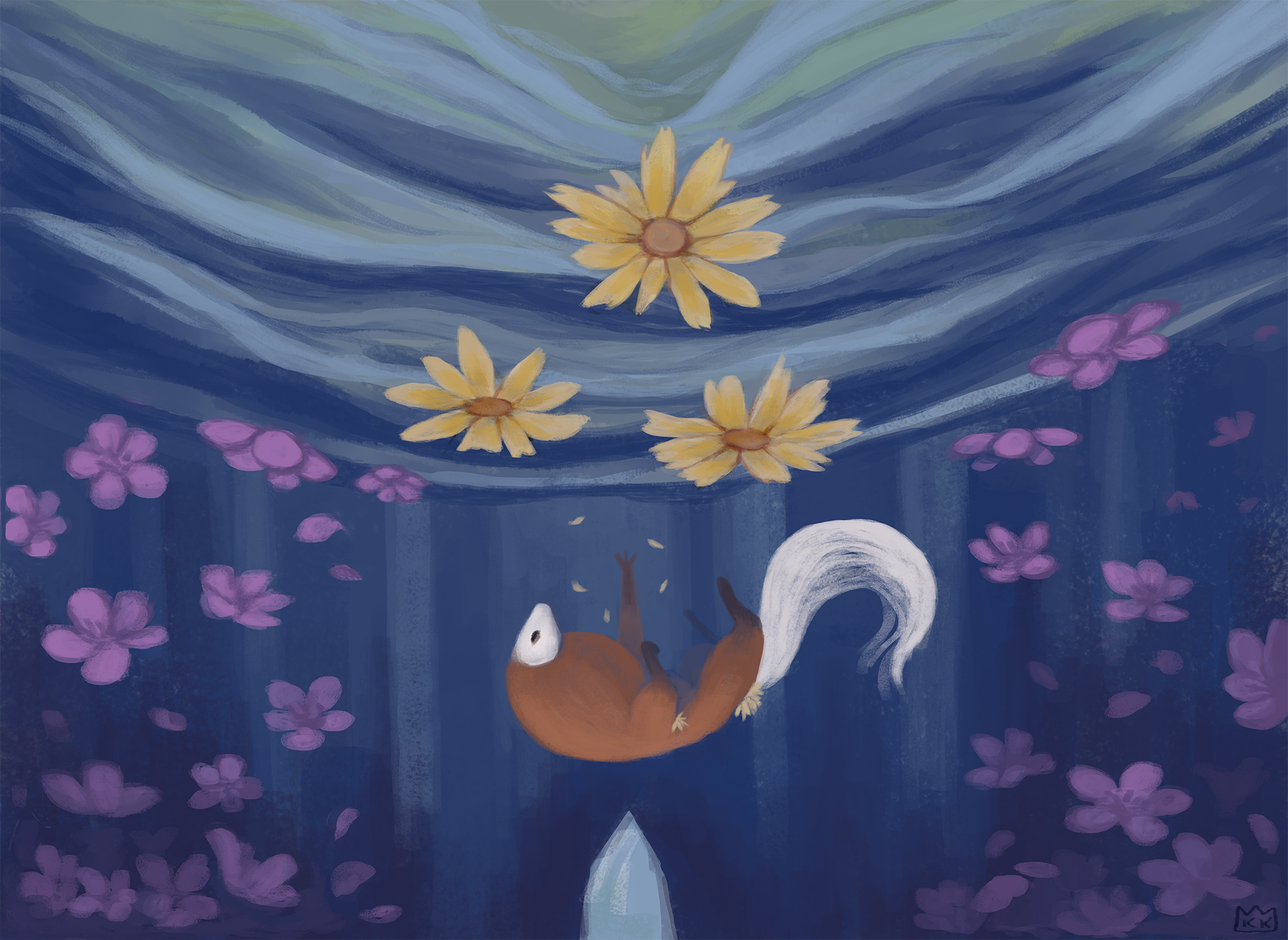 {October 2021}an itinerant ghost settles on the surface of an itinerant pool. ------ weightless resting upon the surface of the water. weightless without the once-protruding bone at her back. but she borrows weight once again for just a minute, delving her elbows into the shallow pool. she fishes out a stone without needing to search. it has been long-buried: the foundation of a collapsed cairn. it is an ordinary stone, shrouded in a layer of mud and algae. she scrubs her paws over it, revealing the impossible luster beneath. as she cradles it, equally impossible lights blink into the stitch-gaps left between the stars. a spectacle almost forgotten, nearly foreign to her in its nostalgia. she exhales. she remembers. _this place... my father and i used to come here. i never told... that's why i knew it,_ she says to no-one in particular. _it's okay to be alone,_ answers the wind, cadence cascading ripples across the inkblot at her feet. the stars wobble. she looks up at the steadily burning ones, but the water collecting at her eyes makes _everything_ wobble. a sharp damp ache blooms in the back of her throat. _i know. i know i know i know._ _it is just the first time_ _in a long time_ _where i've been barren._ {October 2021}0 Comments 0 Shares 33 ViewsPlease log in to like, share and comment! -