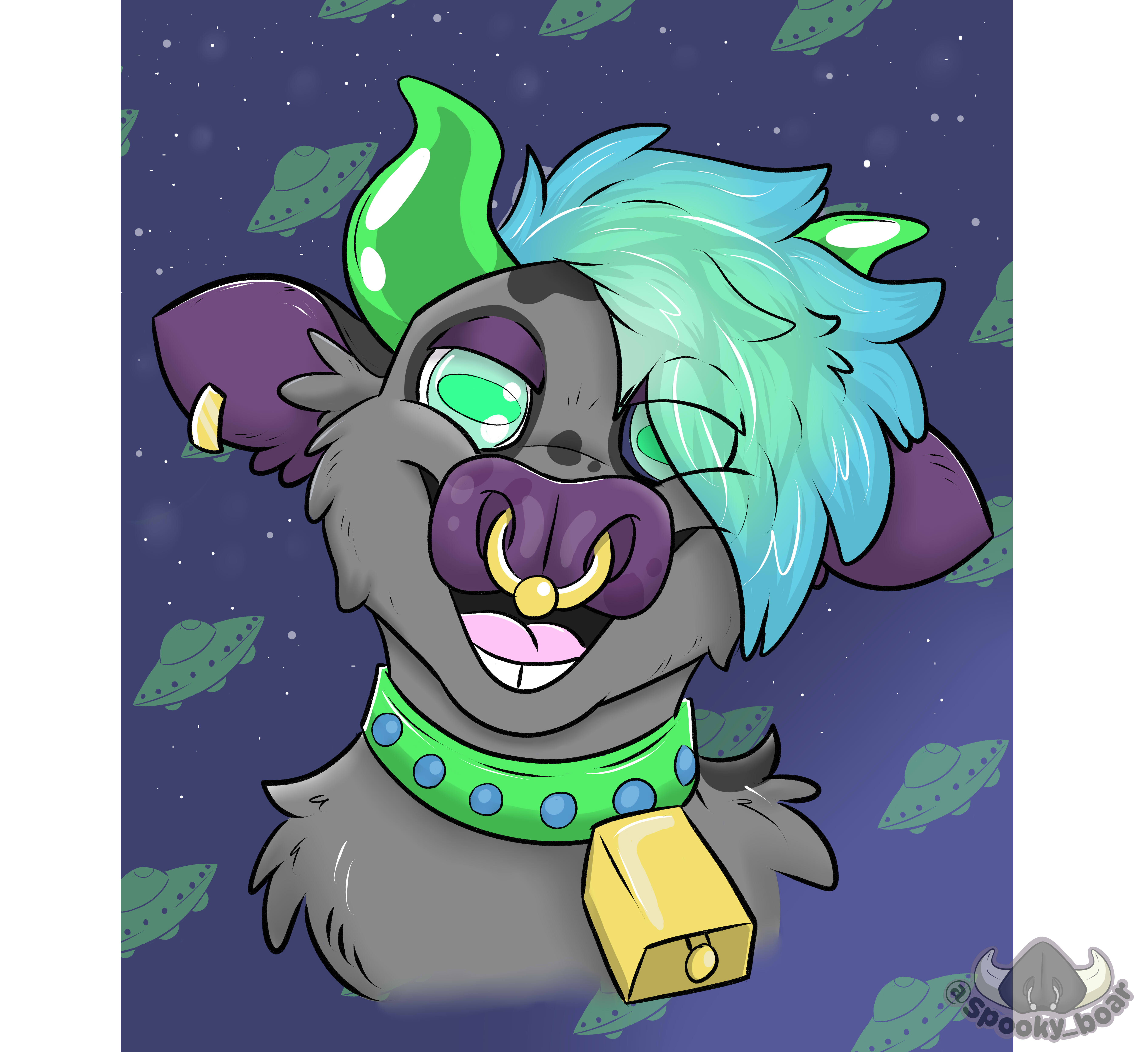Space cow commission for WereKitto on twitter 👽🛸 I had a lot of fun making this headshot!0 Comments 0 Shares 23 Views -