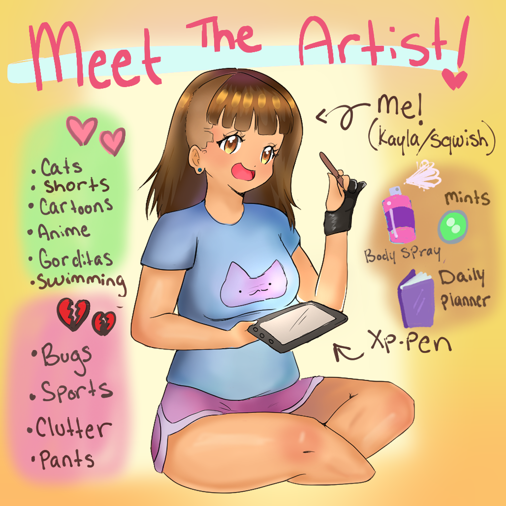 Hello, I'm Sqwish! My style is heavily influenced by anime and I mostly draw fan art or cute comics of my OCs. I hope we can be art friends, feel free to check out my Instagram or TikTok under the same usernameHello, I'm Sqwish! My style is heavily influenced by anime and I mostly draw fan art or cute comics of my OCs. I hope we can be art friends, feel free to check out my Instagram or TikTok under the same username0 Comments 0 Shares 1 ViewsPlease log in to like, share and comment!