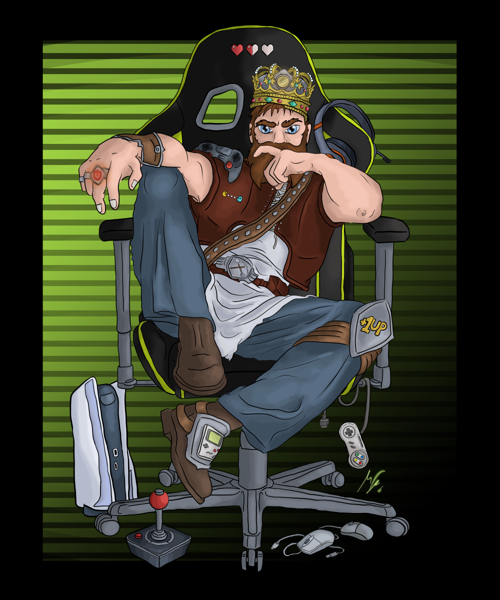 I had so much fun to draw this and I love the result. I'm so proud of myself ^_^This was a reward gift for Twitch channel points on a friend's Twitch channel. It's himself, our dwarven gamer Der_Spielzwerg sitting in his throne of games, showing off his ... "skills" ... well, it's something :P I had so much fun to draw this and I love the result. I'm so proud of myself ^_^0 Comments 0 Shares 23 Views -