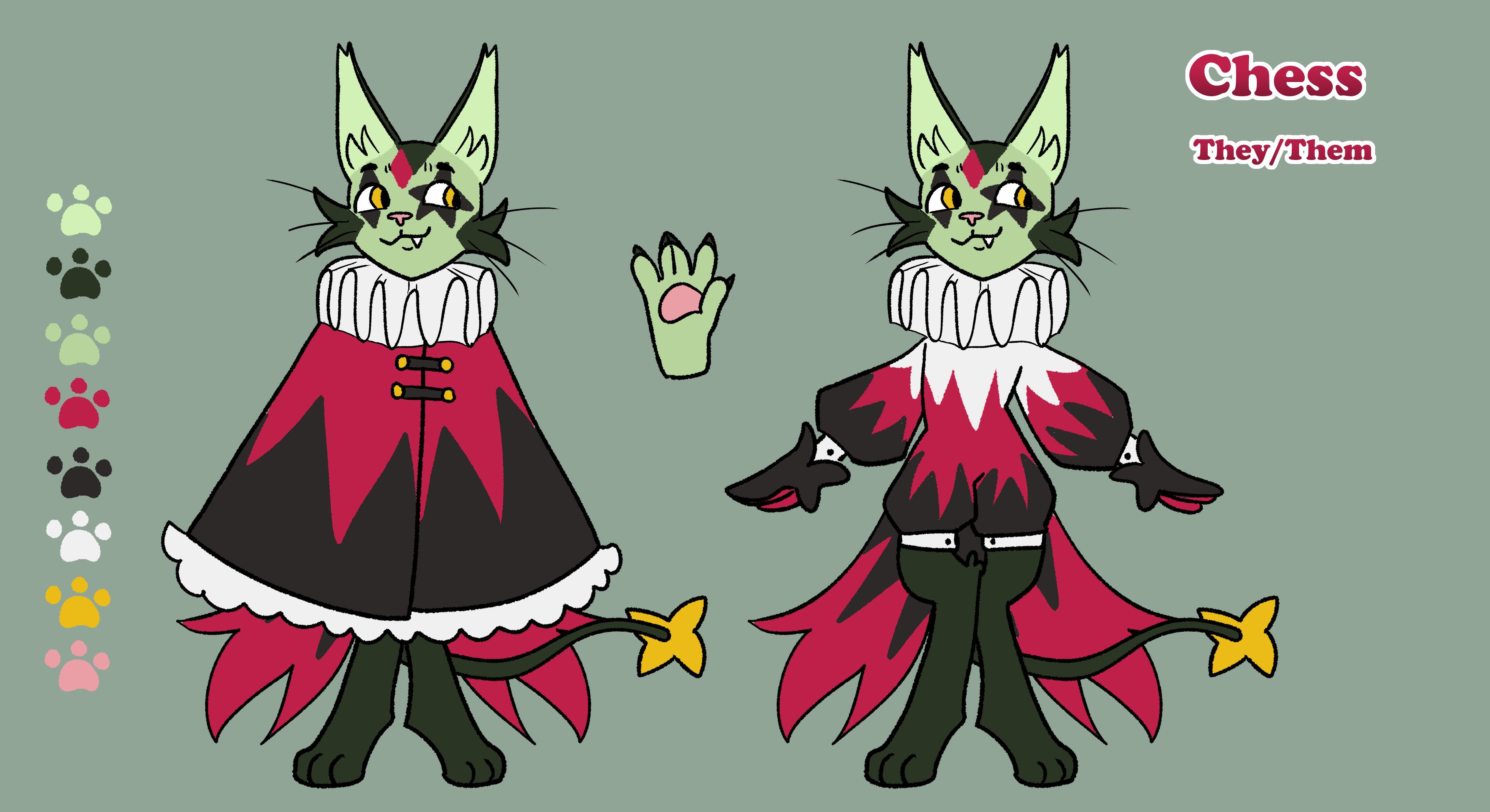 They use They/Them pronouns and identify as ace as well!Here's the ref sheet for my Pokesona Chess! They're a Luxray/Meowscarada crossbreed! A little goofy, clown themed pal. They use They/Them pronouns and identify as ace as well!0 Comments 0 Shares 4 Views -