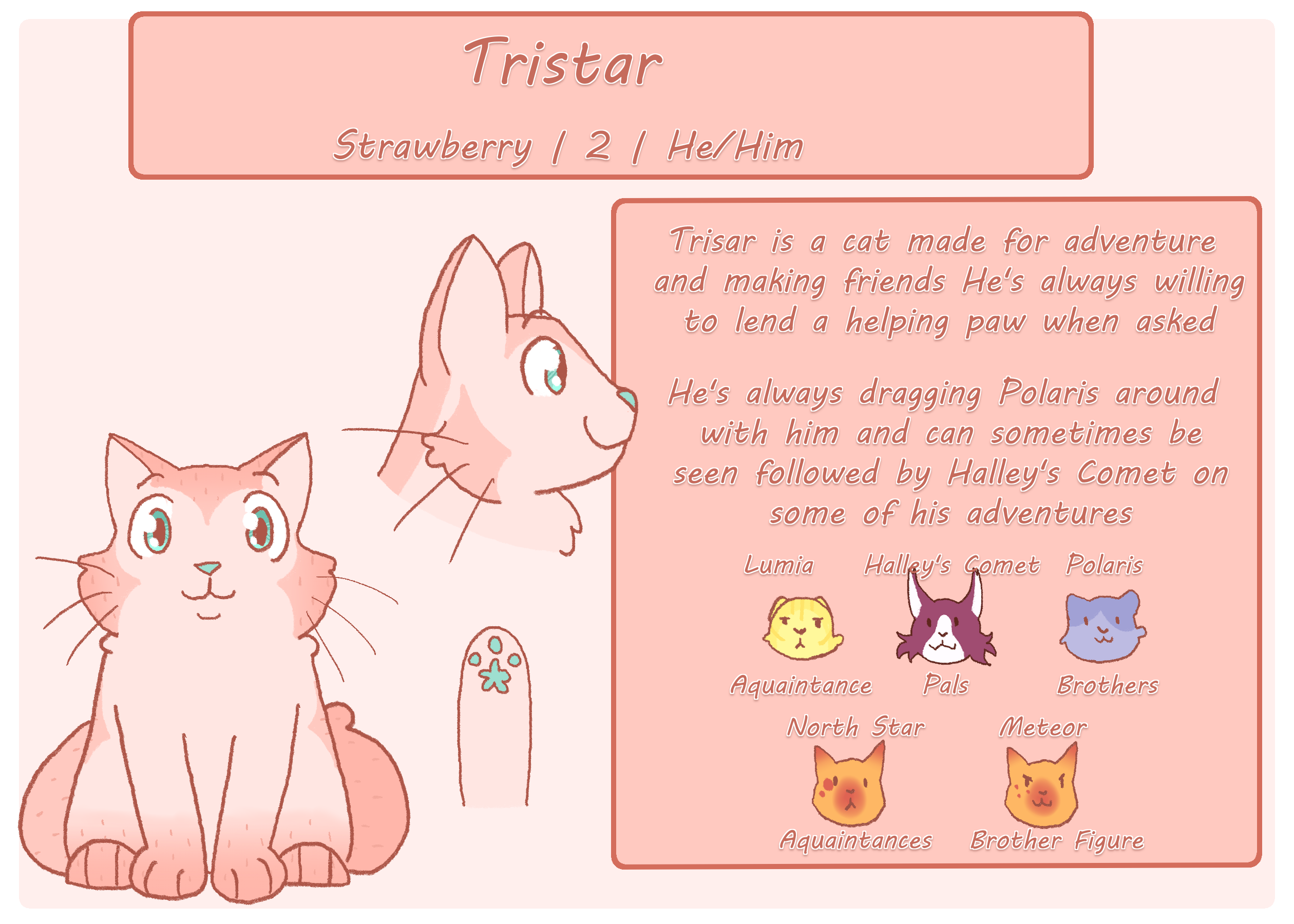 Of course we have to start with the main face of the fruit cats; Tristar!I know I said AAAAAAAGES ago that I was going to make bios of all the fruit cats so you guys could get introduced to them all, but I finally finished em! Of course we have to start with the main face of the fruit cats; Tristar!0 Comments 0 Shares 4 Views -