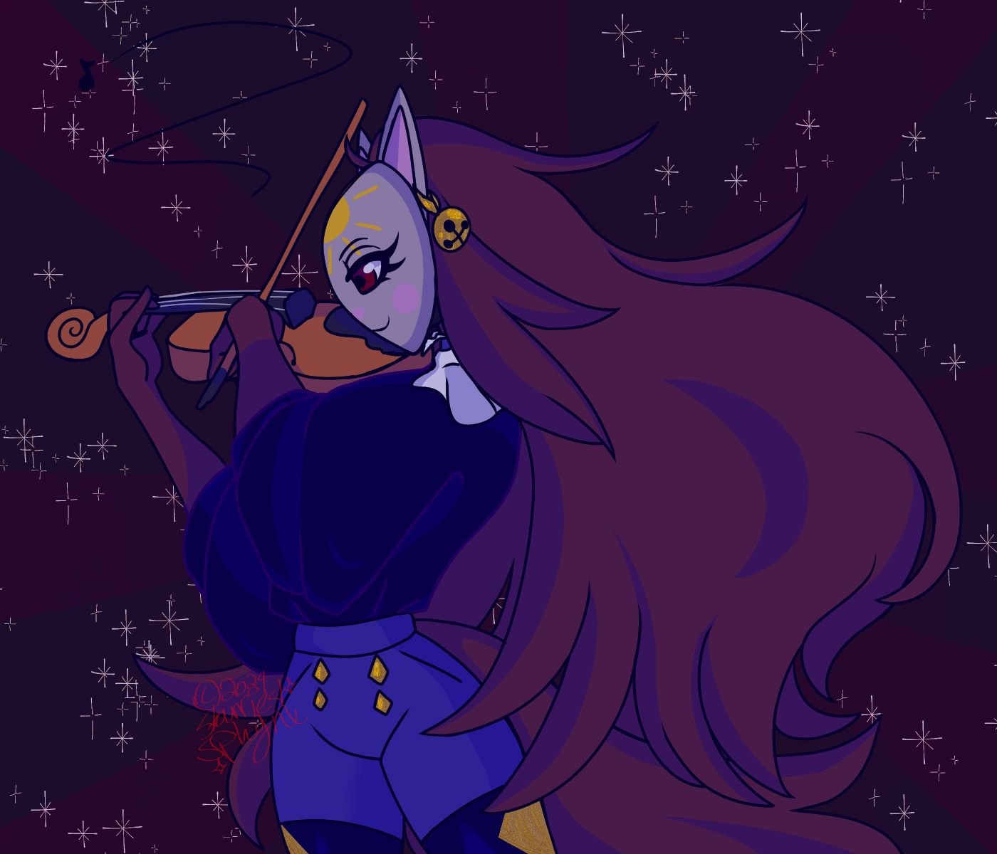 This is my Digital circus oc, Nonza. No one knows what her digital form is supposed to be based off of, but what little she remembers from her old life is that she had a daughter, and also loved the violin. I can just imagine one day Caine would have then go on some musical adventure and a violin would be the first thing Nonza picks up lol. She would play a tune for her daughter to help her sleep before she was trapped in the digital world, so playing the violin gives her a but of closure and keeps her calm.