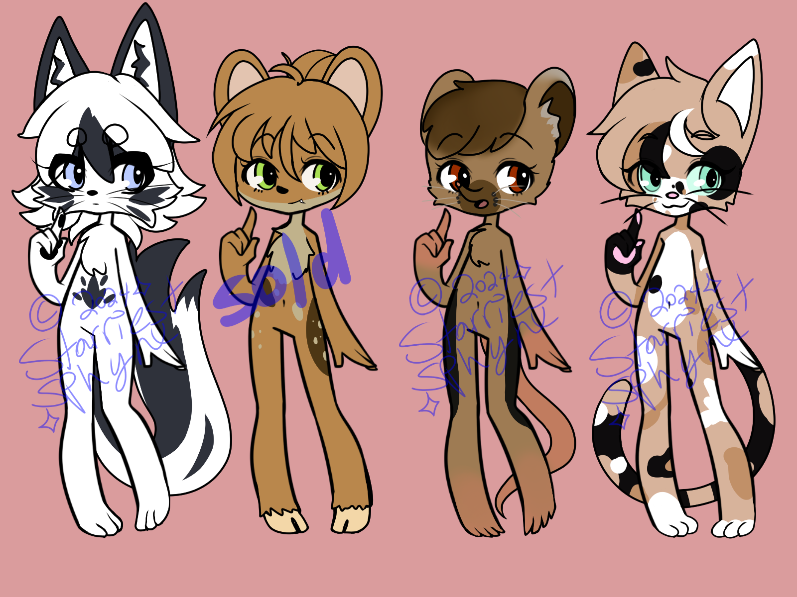 Base by Koru-ru on deviantArt!Some adopts! Looking for $$ offers as unfortunately I got bills coming up 😅 each are $15! Except the second one tho lol, that was nabbed on discord 🤣 I take c/ashapp and p/aypal!! 1. Canadian marble fox 2. Cheverotain (mouse deer, SOLD) 3. Elephant shrew 4. Mixed Cat (sold over Discord) Dm or comment to claim!! Once bought, you'll receive a separate file without the watermark 💕 Base by Koru-ru on deviantArt!0 Comments 0 Shares 3 Views -