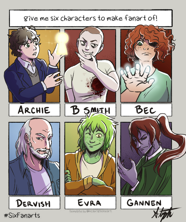 * Gannen from the Cirque du Freak seriesPictured: * Archie from Archibald Lox * B Smith from Zom-B * Bec from the Demonata series * Dervish from the Demonata series * (Older) Evra from the Cirque du Freak series * Gannen from the Cirque du Freak series0 Comments 0 Shares 7 Views -
