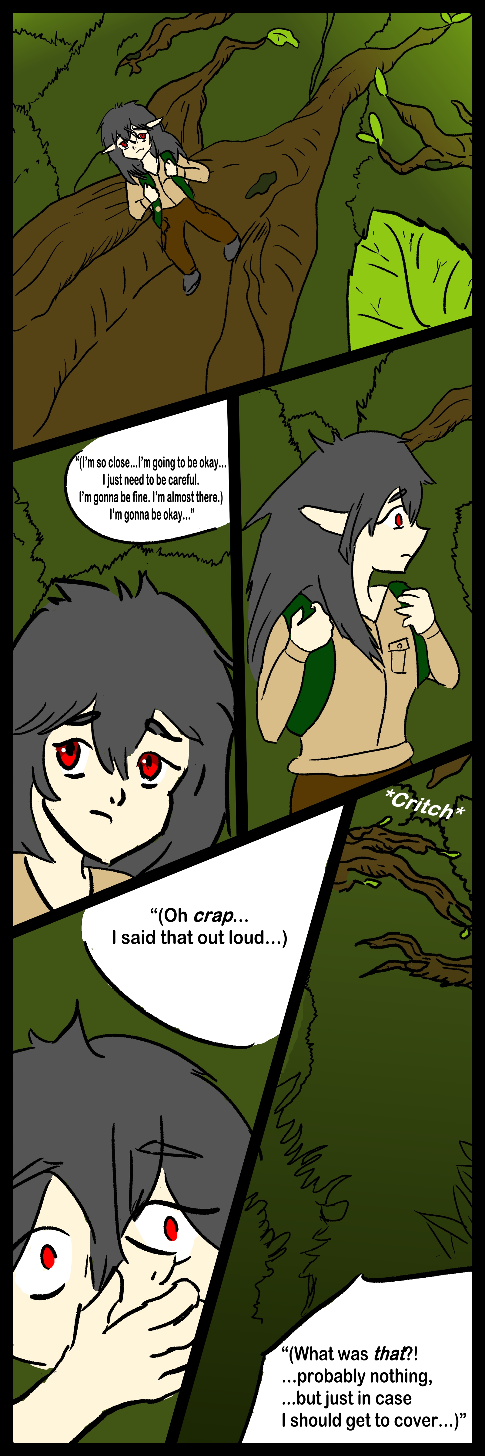 Finally made another page of the comic I intended to finish way back on 8/8 xpA tiny elf wanders the branches of enormous trees. He seems nervous as he traverses a dangerous place. Finally made another page of the comic I intended to finish way back on 8/8 xp0 Comments 0 Shares 3 Views