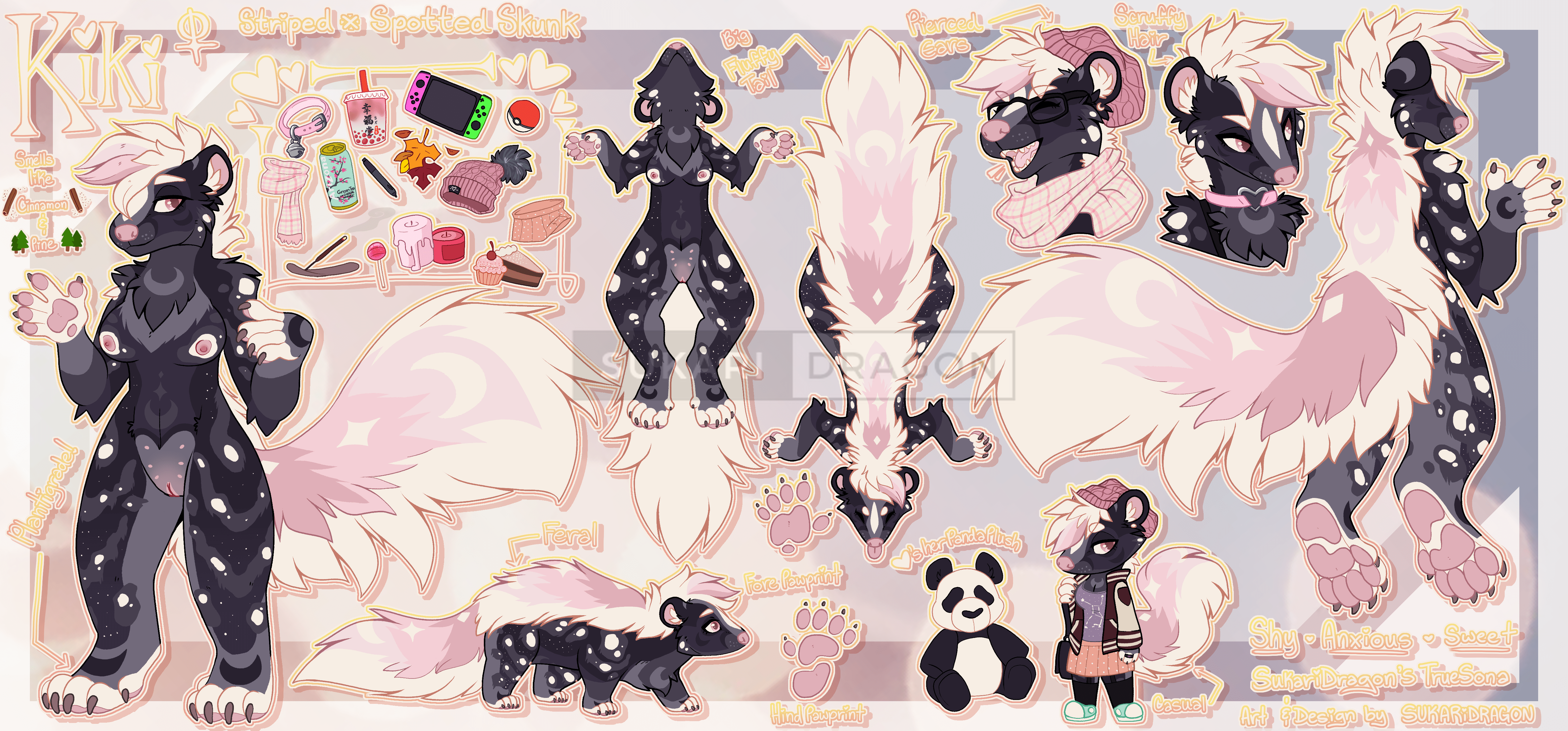 Support me on Patreon or Ko-Fi!πThis is old art! I'm just uploading all my artwork to have a full gallery on InkBlot π I went on a little hiatus after a loss in the family, and while away, I designed myself a bunch of new characters because that's my form of therapy π This is my true-sona, Kiki! She is a spotted x striped skunk mix! I love her more than life itself ππ Kiki was one of my nicknames back in high school, and skunks have always been one of my favorite animals, so here she is in all her glory! She smells like pine and cinnamon and loves cuddles and being cozy <3 Check out her ToyHouse [profile](https://toyhou.se/10458803.kiki) to see more of their art! ------ πΈ Art Β© SukariDragon πΈ π Character Β© SukariDragon π Please DO NOT repost or reupload without crediting me! Thank you! ------ β¨ Follow my other social medias [here](https://sukaridragonstudios.uwu.ai) β¨ π Support me on Patreon or Ko-Fi! π0 Comments 0 Shares 41 Views