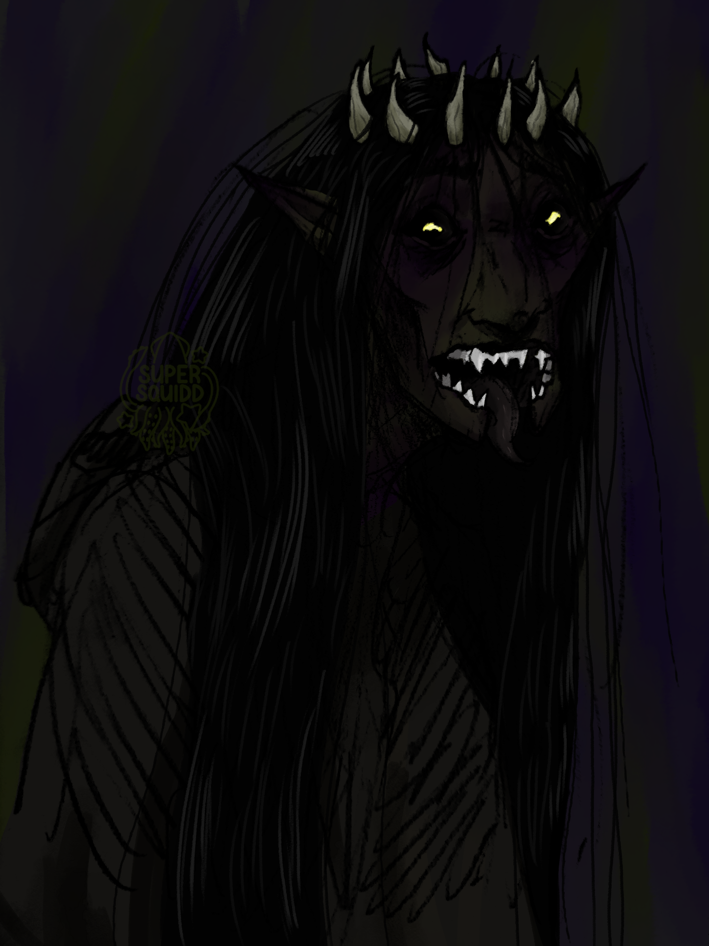 Bless is one of the party members in the main d&d game I am apart of. She is a hexblood sorcerer using a re-flavored abyssal sorcerer subclass focusing on poison damage. Despite her appearance suggesting a night hag, she is extremely sweet and friendly, but still invokes a primal fear response even in her closest friends.
