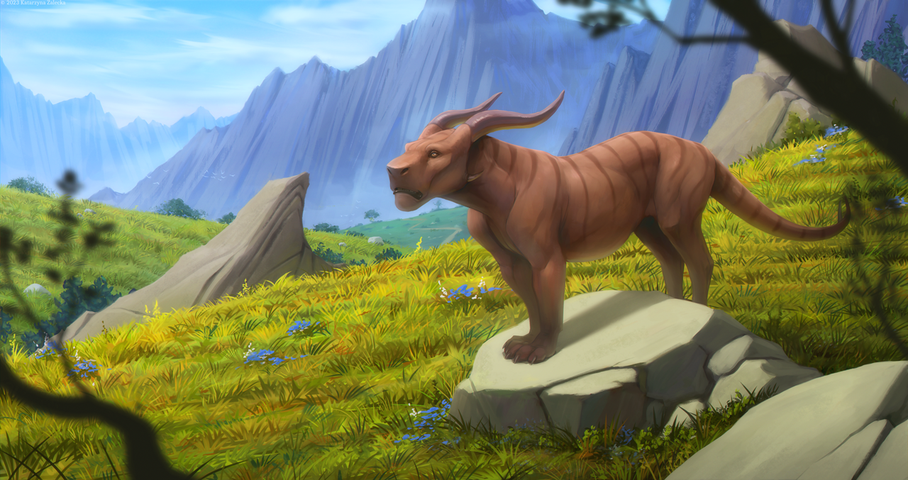 While a LOT of my work is more speculative or worldbuilding related this is one of few ACTUAL story illustrations I've made thus far. Leah and Odeius' first encounter, after she' becomes lost/on the run from her captors miles away from her city.