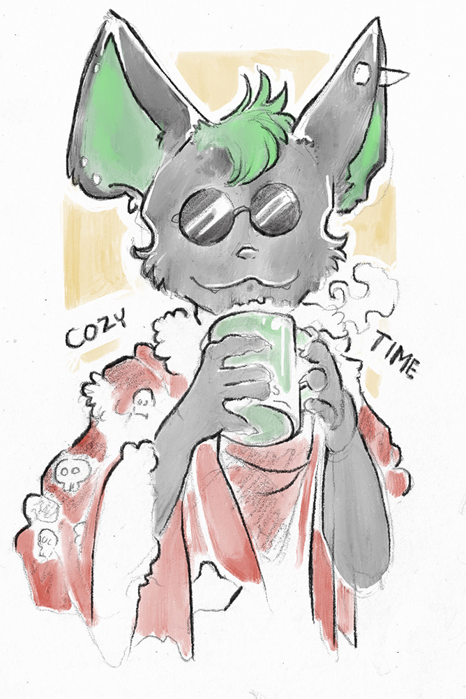 Just a quick scribble from last month of Bently, my profoundly dorky bat-sona (one can never have too many fursonas, and I don't always feel like a bubblegum pink fox).
