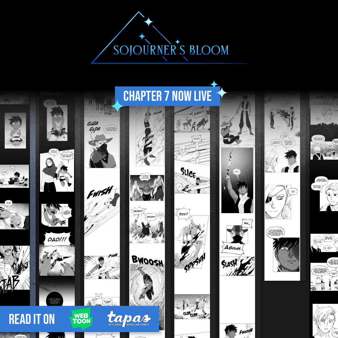 [Read it on Tapas](https://tapas.io/series/Sojourners-Bloom/info)Chapter 7 of my comic, Sojourner's Bloom, is now up for free on Webtoon and Tapas! Please consider subscribing and sharing with your friends, thank you very much ❤️ [Read it on Webtoon](https://www.webtoons.com/en/challenge/sojourners-bloom/list?title_no=858650) or [Read it on Tapas](https://tapas.io/series/Sojourners-Bloom/info)0 Comments 0 Shares 8 Views -