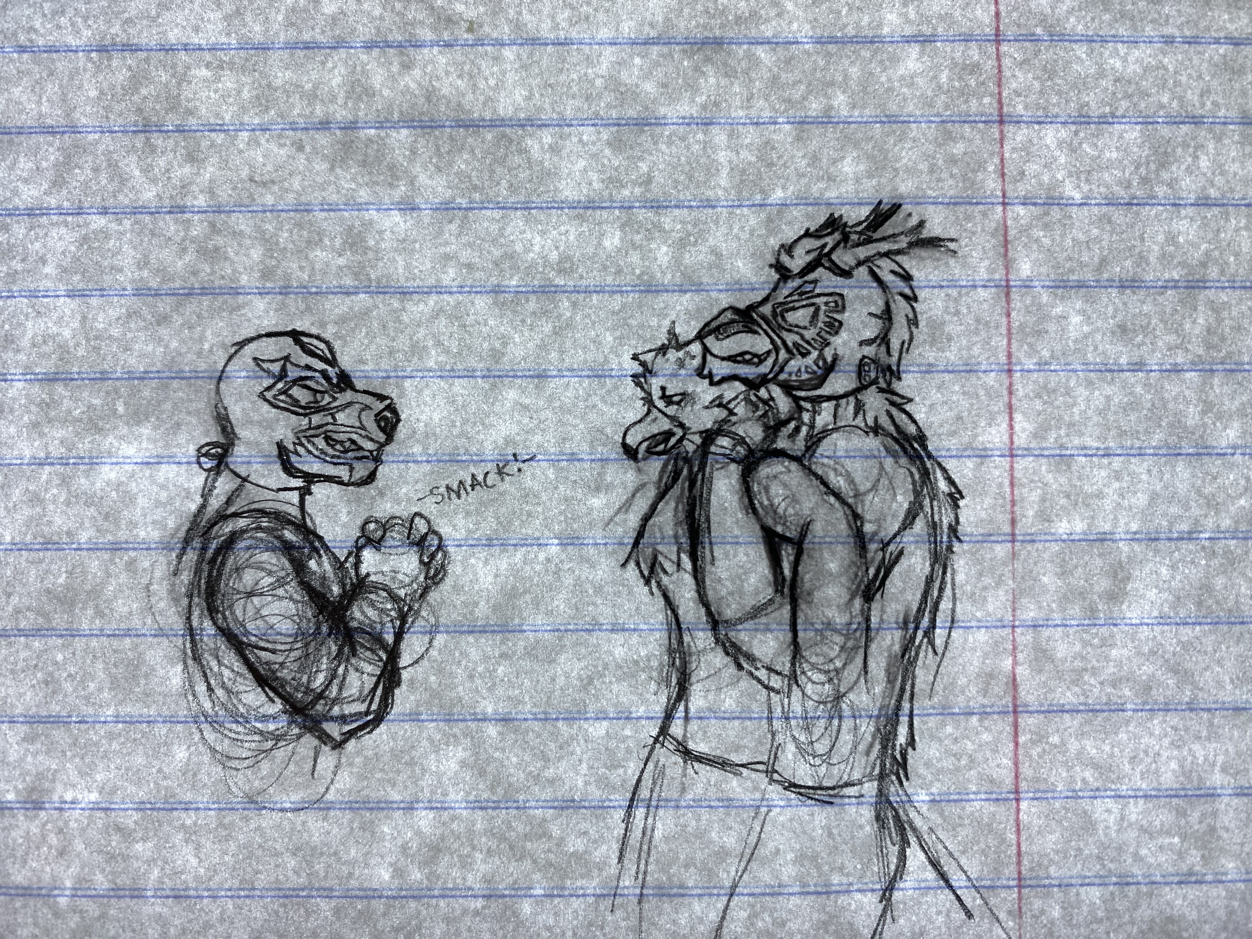 Small sketch I probably won’t finish. My bois, Sodon and Zak are getting a little too in character as heel wrestlers, but don’t worry they apologize to the bird afterwards and take him out to dinner. Zak’s mask is based on a design by NoMoreBiscuit on Twitter.Small sketch I probably won’t finish. My bois, Sodon and Zak are getting a little too in character as heel wrestlers, but don’t worry they apologize to the bird afterwards and take him out to dinner. Zak’s mask is based on a design by NoMoreBiscuit on Twitter.0 Comments 0 Shares 25 Views
