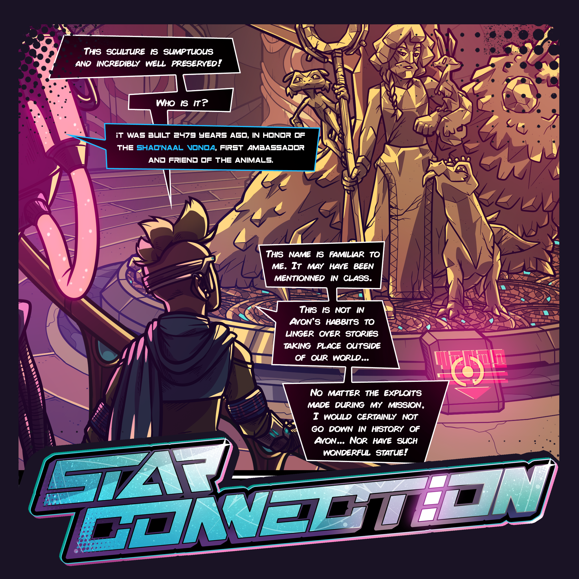 Read our comics for free on [Tapastic](https://tapas.io/series/Star-Connection) !The Ambassador Anno No'Ova Vana, visiting the Avon Embassy with his Synthetic guide. Read our comics for free on [Tapastic](https://tapas.io/series/Star-Connection) !0 Comments 0 Shares 41 Views