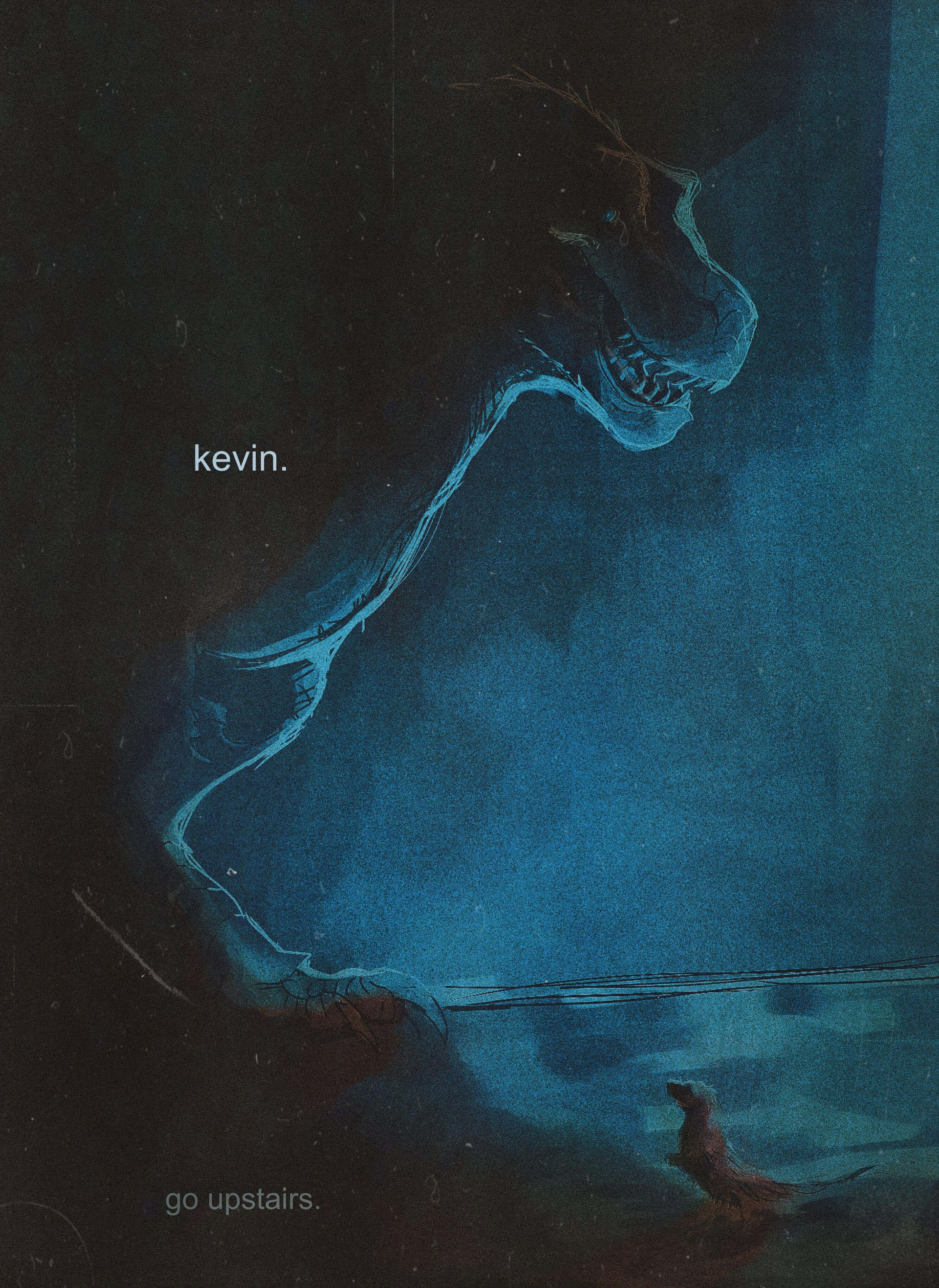 some SKINAMARINK!!!! fanart! with dinosaurs bc i kept imagining the family as tyrannosaurs