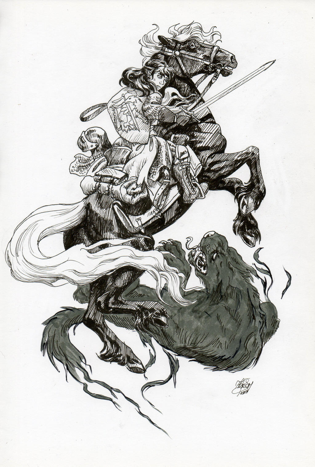 The piece made for 2017's Inktober - Igna and Aquila fighting off a Veirahond, a shapeshifting beast. I still like the brand of stylisation and the composition in this one.The piece made for 2017's Inktober - Igna and Aquila fighting off a Veirahond, a shapeshifting beast. I still like the brand of stylisation and the composition in this one.0 Comments 0 Shares 25 Views