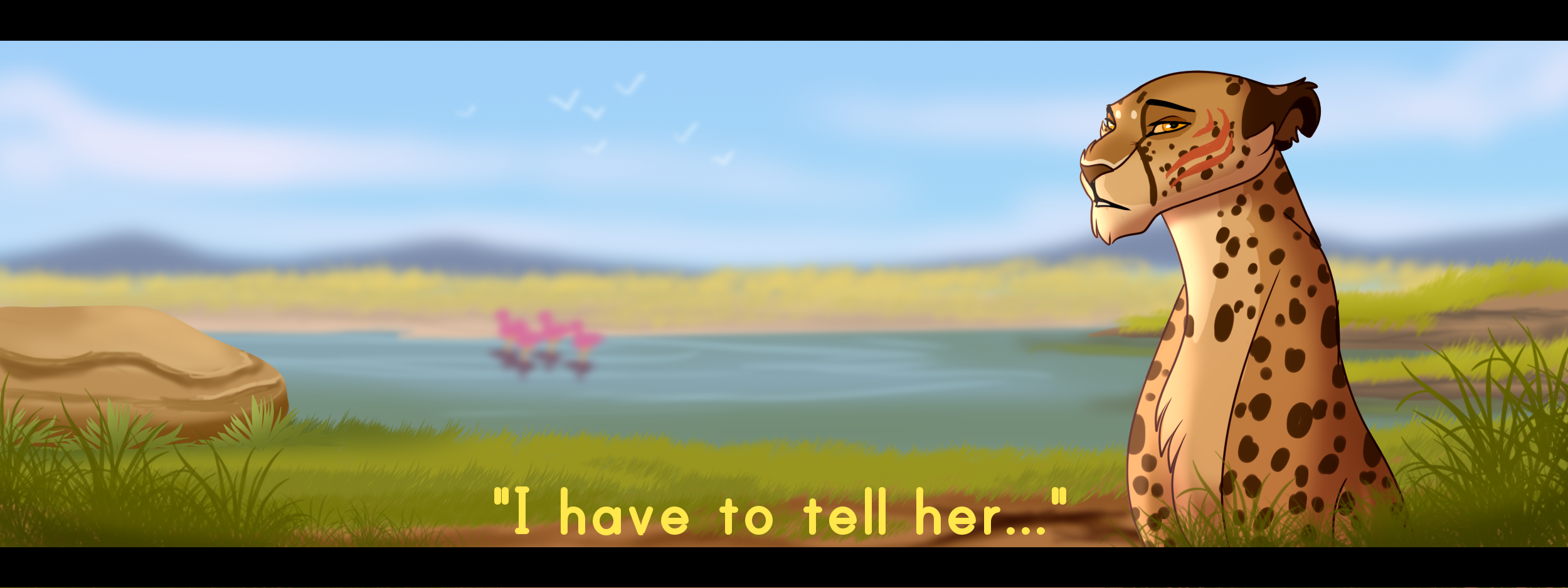 Whilst Qatal enjoyed his time wandering the territory of Mlima, he also enjoyed spending time by the lake simply sitting and reflecting. It is one of these times that causes him to pause... he has caught feelings for the lioness, Inja. And through the time they have spent together; talking, laugh, and flirting... He realises that those feelings are reciprocated. It's with a heavy, resigned sigh that the cheetah comes to another realisation. He needs to tell her about his past.